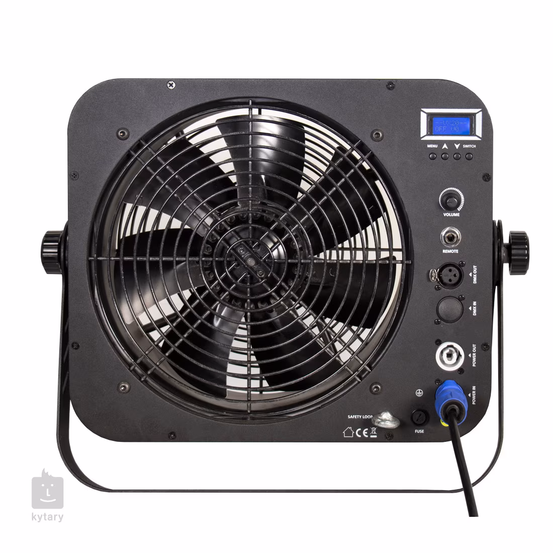 Entour Cyclone de la ADJ este un ventilator portabil versatil, excelent pentru suflarea ceții sau simularea vântului în aplicații de teatru sau film. Unitatea vă permite să reglați viteza ventilatorului de la 500 la 3000 rpm, astfel încât să puteți potrivi cu precizie intensitatea fluxului de aer. Pentru control, utilizați fie protocolul DMX standard cu unul sau două canale, fie o telecomandă cu fir (nu este inclusă). În plus, veți găsi un panou de control clar cu afișaj și butoane pe panoul din spate și un potențiometru pentru reglarea manuală a vitezei de ventilație.