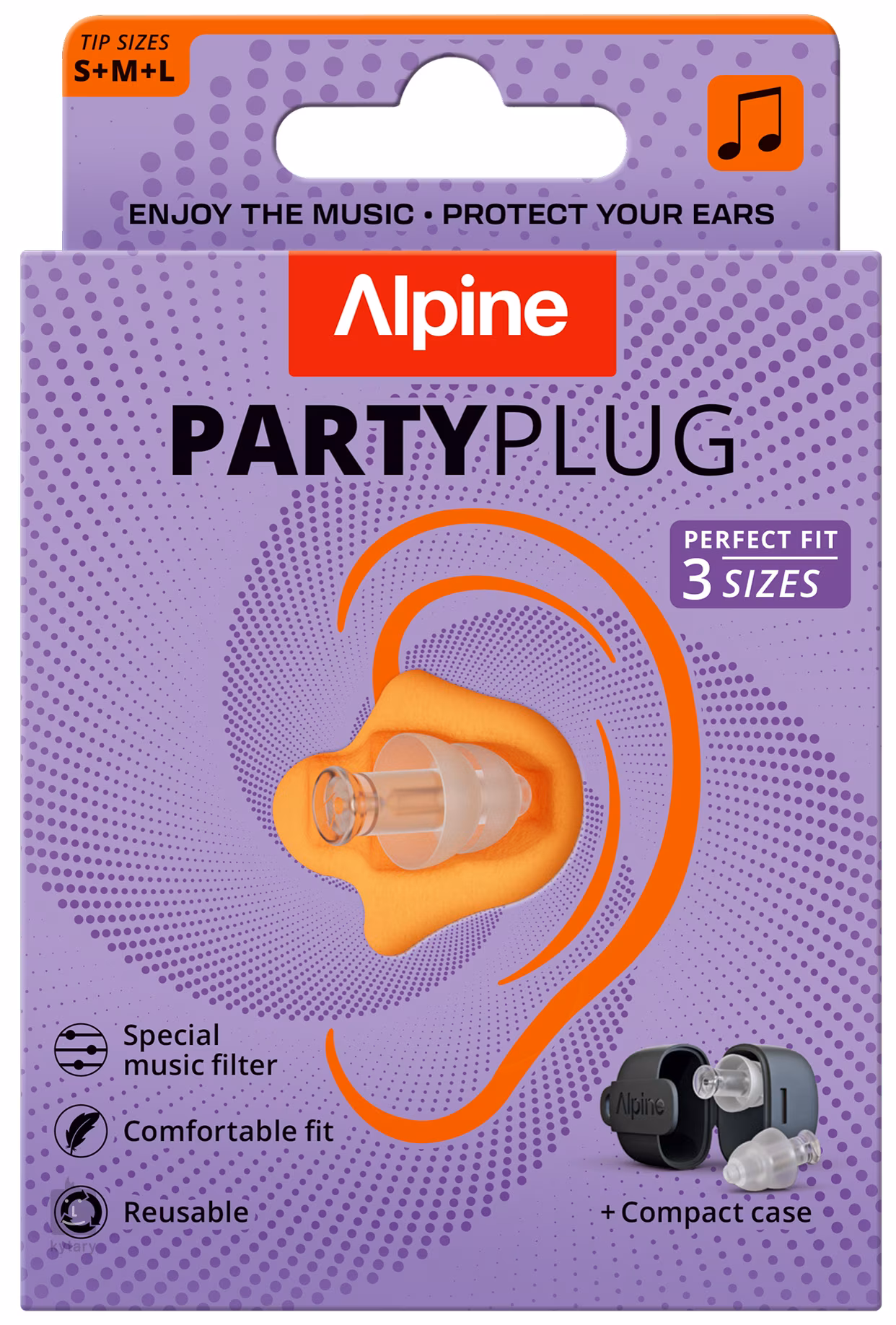 PartyPlug-ul nou îmbunătățit oferă și mai mult confort cu trei dimensiuni de vârfuri(S/M/L) pentru a se potrivi fiecărei urechi. Designul ergonomic cu un filtru mai lat îl face mai ușor de manevrat și oferă o potrivire mai sigură și mai stabilă. De asemenea, este inclusă o carcasă robustă pentru chei, pentru a vă păstra protecția auditivă la îndemână în orice moment - fie că vă aflați la un festival, club sau concert.