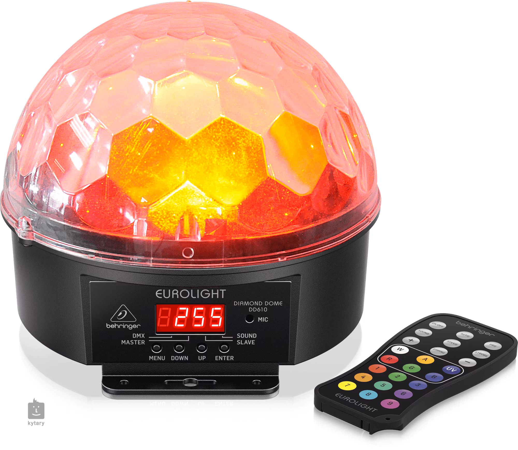 DIAMOND DOME DD610-R de la Behringer este un efect LED oglindă compact care va lumina orice petrecere sau eveniment special. La baza sa se află un singur LED de 12W cu o bogată paletă de culori RGBWA + UV care vă permite să creați culori bogate, nuanțe pastelate moi, lumină albă cu temperaturi de culoare variate și iluminare ultravioletă specială. Lumina trece apoi printr-o cupolă transparentă care emite fascicule de culori puternice în spațiu, rotindu-se în jurul axei centrale a efectului. Rezultatul este un iluminat impresionant care îmbunătățește atmosfera oricărui spațiu și vă ajută să vă entuziasmați vizitatorii.