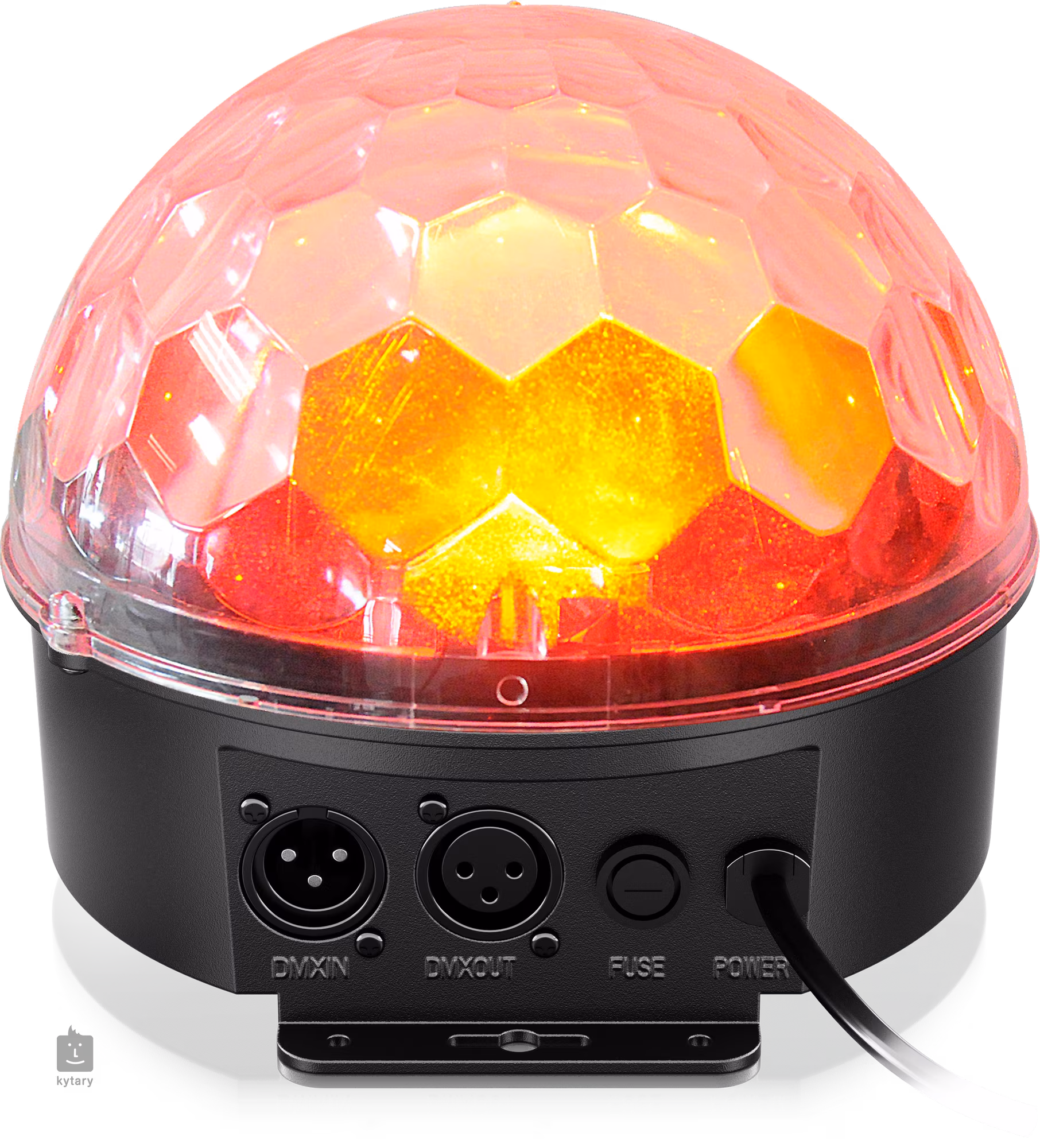 Puteți controla dispozitivul în mai multe moduri diferite: există un protocol DMX-512 standard cu 4 sau 11 canale, un mod automat cu o gamă de spectacole de lumină presetate, un mod de control audio cu sensibilitate reglabilă a microfonului și un controler cu infraroșu IRC1 care vă permite să setați modul de control, efectul stroboscopic, funcția de reglare a intensității, șase culori de bază sau nouă presetări de culori gata făcute. Un panou de control clar cu afișaj și butoane este disponibil pentru setările manuale. Unitatea este echipată cu conectori DMX cu 3 pini și un cablu de alimentare încorporat.