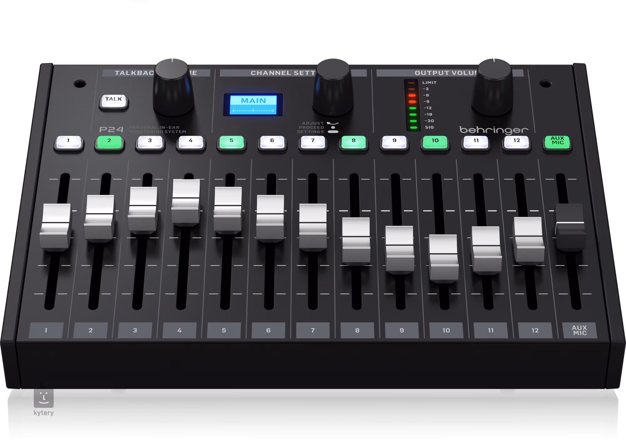 Behringer P24 este o consolă de mixaj pentru monitorizare personală din seria StageConnect cu 13 canale stereo și faders de 60 mm.