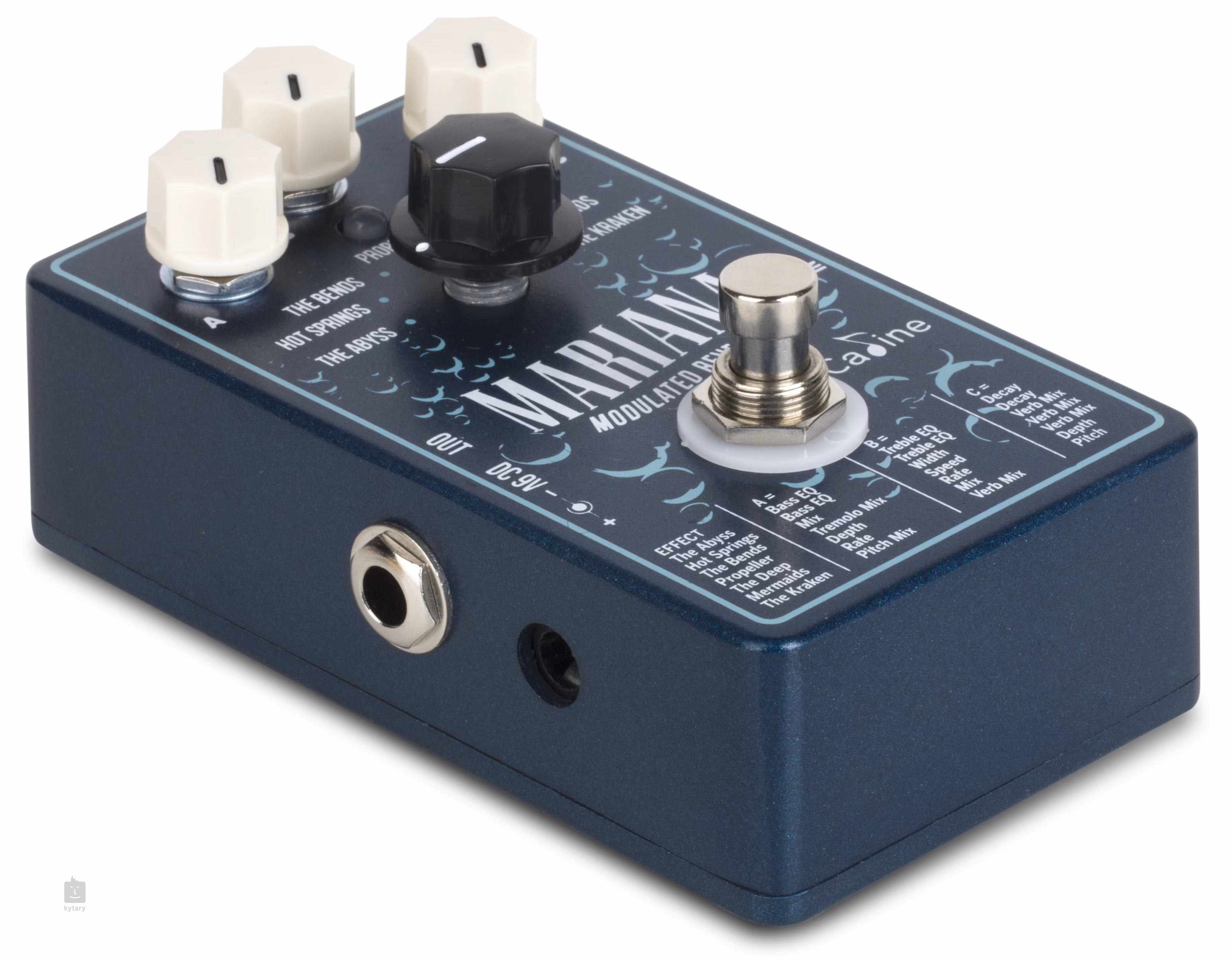Efectul de chitară Mariana Modulated Reverbs va încânta iubitorii de texturi sonore bogate și complexe. Acesta oferă șapte forme diferite de efect de reverberație modulată cu care vă puteți scufunda în adâncurile sonice ale fanteziei muzicale. Funcțiile celor trei controale ale cutiei se schimbă în funcție de tipul de efect selectat, iar lista funcțiilor este imprimată pe șasiul pedalei pentru o referință rapidă.