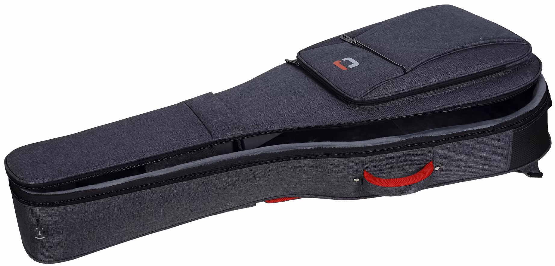 Interiorul carcasei are o căptușeală de catifea gri pentru a asigura o delicatețe maximă față de lemnul sau lacul instrumentului dvs. De asemenea, este inclusă o protecție detașabilă pentru capul chitarei și un suport pentru gât. În plus, partea inferioară a carcasei prezintă o armătură din plastic care absoarbe eficient șocurile atunci când este așezată pe podea.