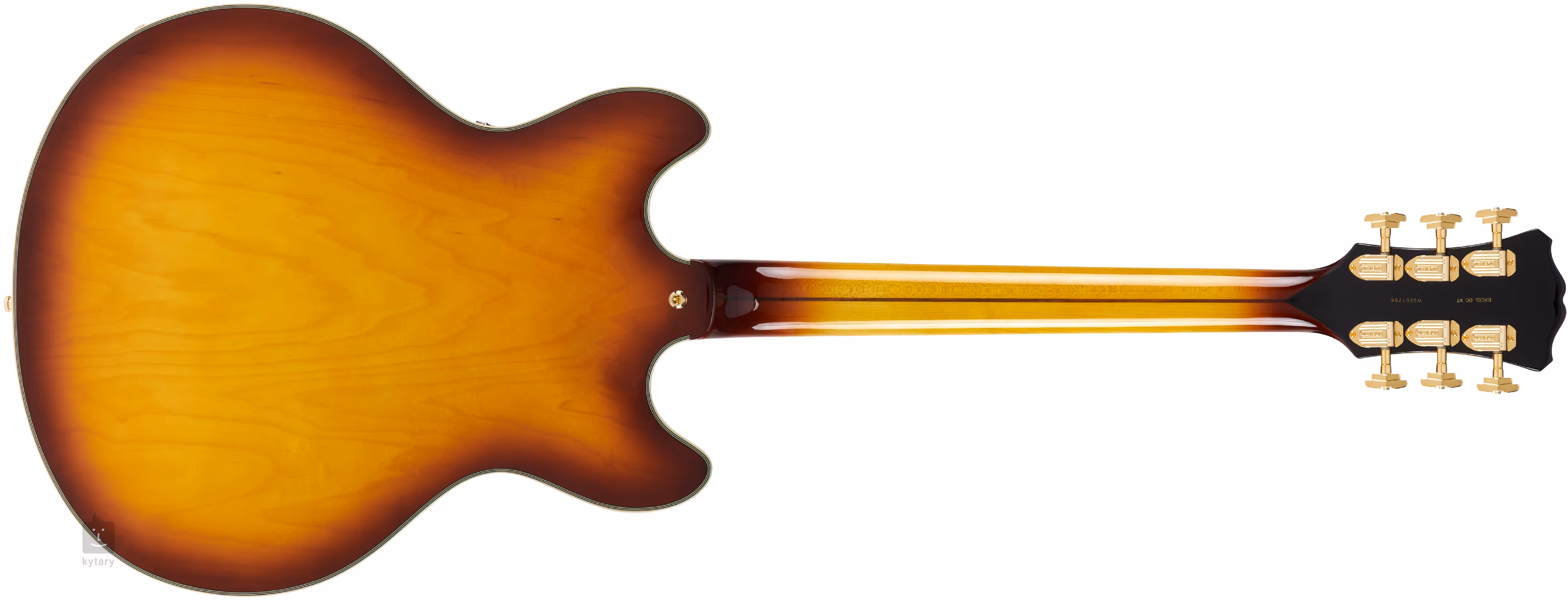 D'Angelico Excel DC XT Iced Tea Burst Quilt este o versiune mai luxoasă a modelului standard Excel DC. Corpul său cu lățimea de 16 inch este compus dintr-o față din arțar cu fulgi laminat și spate și laterale din arțar laminat. Finisajul din arțar pufos este accentuat de schema de culori Iced Tea Burst. Blocul central întărește placa de rezonanță și contracarează efectul nedorit de "binding" al corpului.