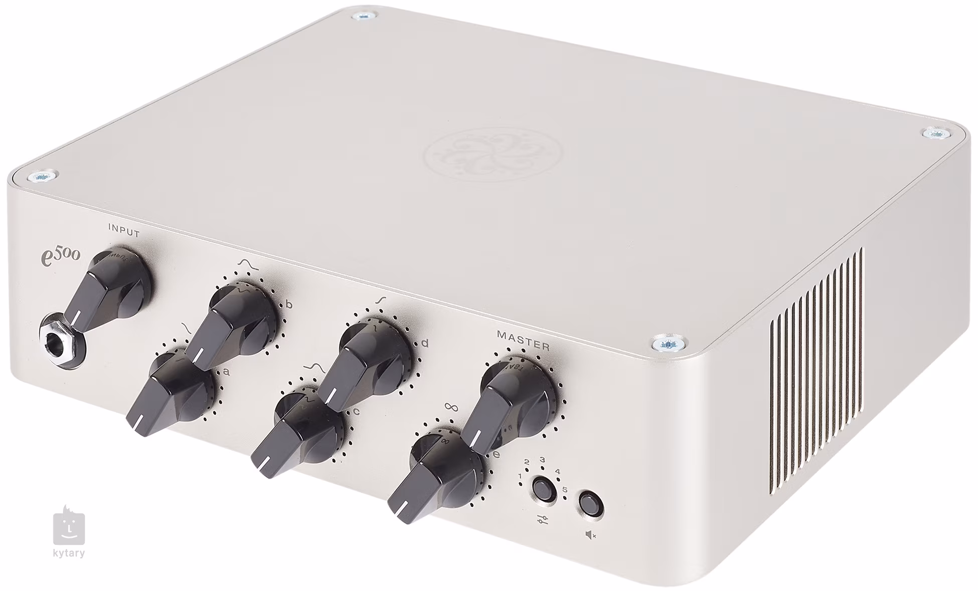 Pe panoul frontal minimalist al acestui amplificator foarte compact, pe lângă controalele pentru volumul principal și semnalul de intrare, veți găsi și cinci potențiometre pentru controlul egalizării, pe care le puteți atribui pentru a controla orice parametru doriți atunci când conectați o aplicație. În plus, vei găsi și un comutator de presetări și o funcție Mute, care activează și tunerul integrat.