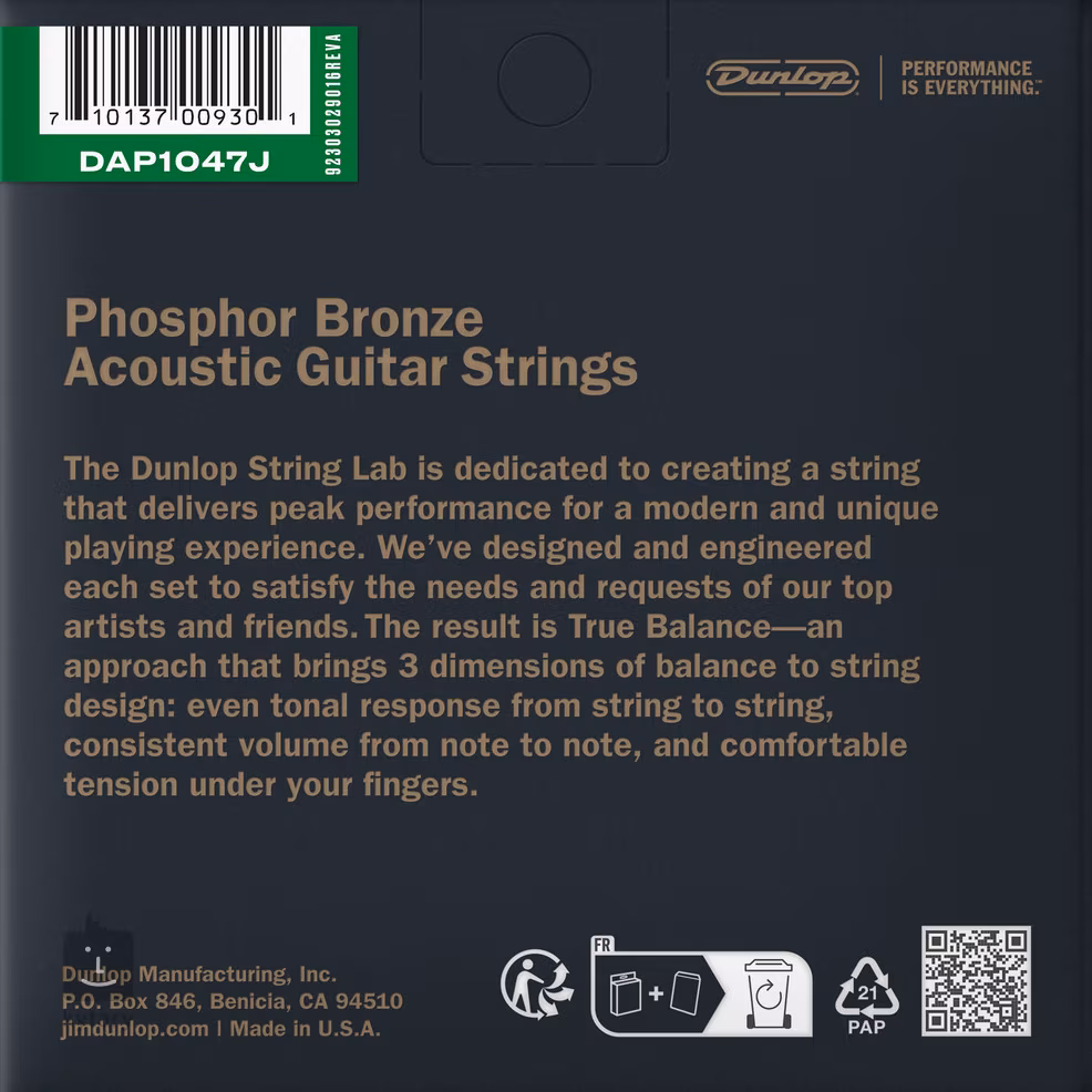 Corzile Dunlop pentru chitară acustică oferă un sunet strălucitor cu bas solid, înalte clare și răspuns dinamic. Perfecte pentru a cânta cu un pick și cu degetele. Corzile din acest set sunt înfășurate cu popularul aliaj de fosfor-bronz, care le conferă un ton cald și rotund. Seria vă va încânta cu meșteșugul precis, durata lungă de viață și sunetul echilibrat. Indiferent dacă cântați rock, pop, metal, blues sau country, corzile Dunlop cu siguranță nu vă vor dezamăgi. În plus, fiecare set este ambalat special folosind tehnologia VCI Fresh pentru a vă asigura că corzile dvs. sunt la fel de proaspete ca în ziua în care au fost fabricate.