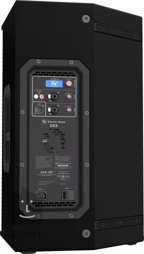Amplificatorul de înaltă eficiență EKX-12P, de 1500 W, de clasă D, oferă un SPL de vârf de până la 132 dB și o gamă de frecvențe de 50 Hz - 20 kHz prin transductoare extrem de sensibile (woofer de 12" și driver de compresie de înaltă frecvență din titan de 1") concepute și proiectate de EV.