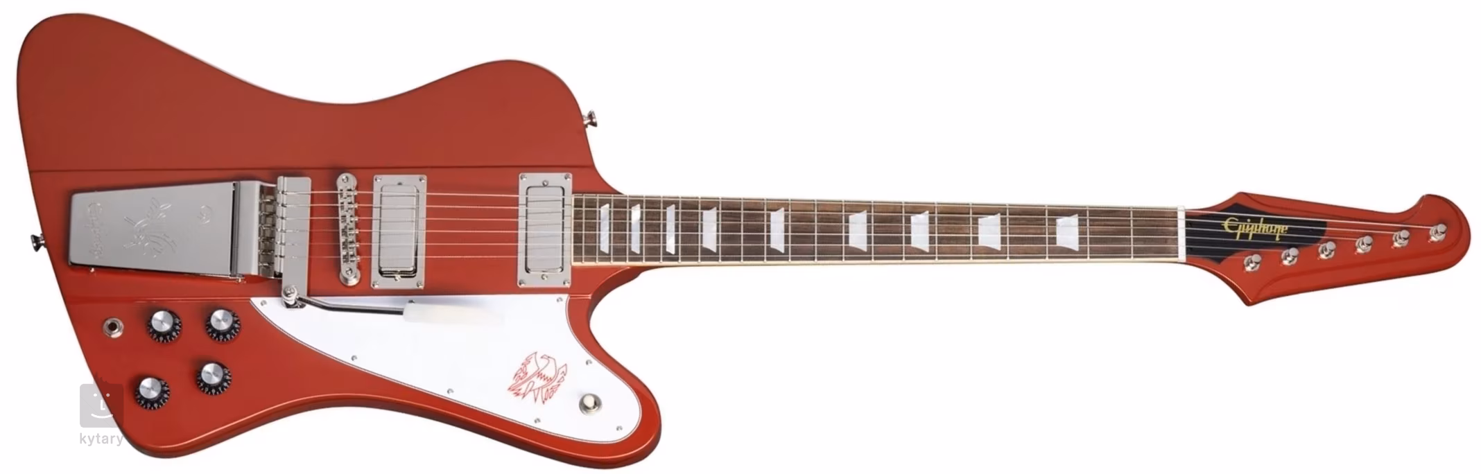 Chitarele electrice Epiphone au fost o alternativă mai accesibilă la originalele Gibson timp de decenii. Iar chitara electrică 1963 Firebird V Maestro Vibrola, realizată în colaborare cu Gibson Custom Shop, este o replică autentică a chitarei electrice concepute de celebrul designer auto Raymond Dietrich.