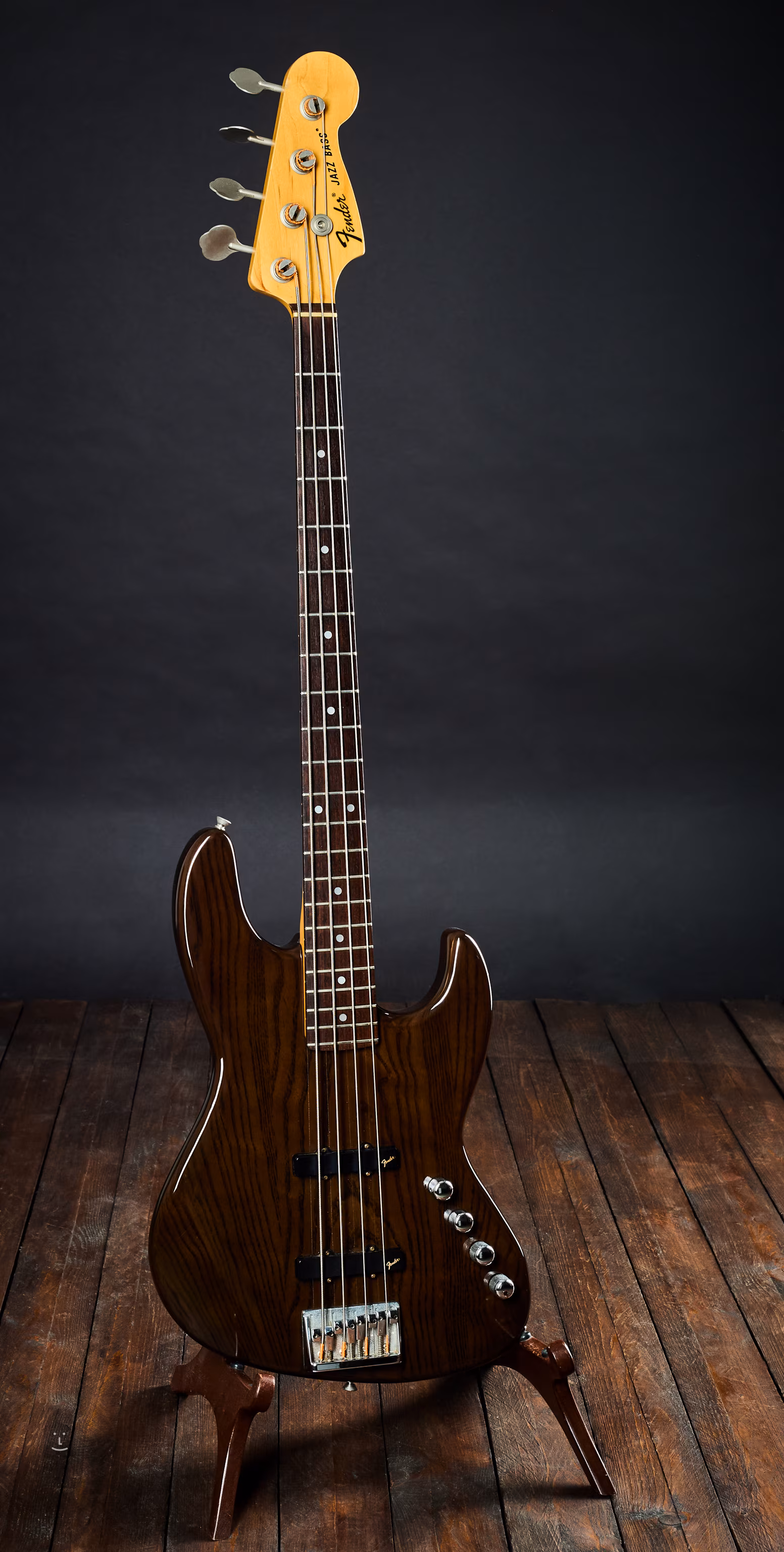 Bas japonez Fender Jazz Bass din 1990, realizat în fabrica Fujigen Gakki conform standardelor basurilor moderne din acea perioadă.