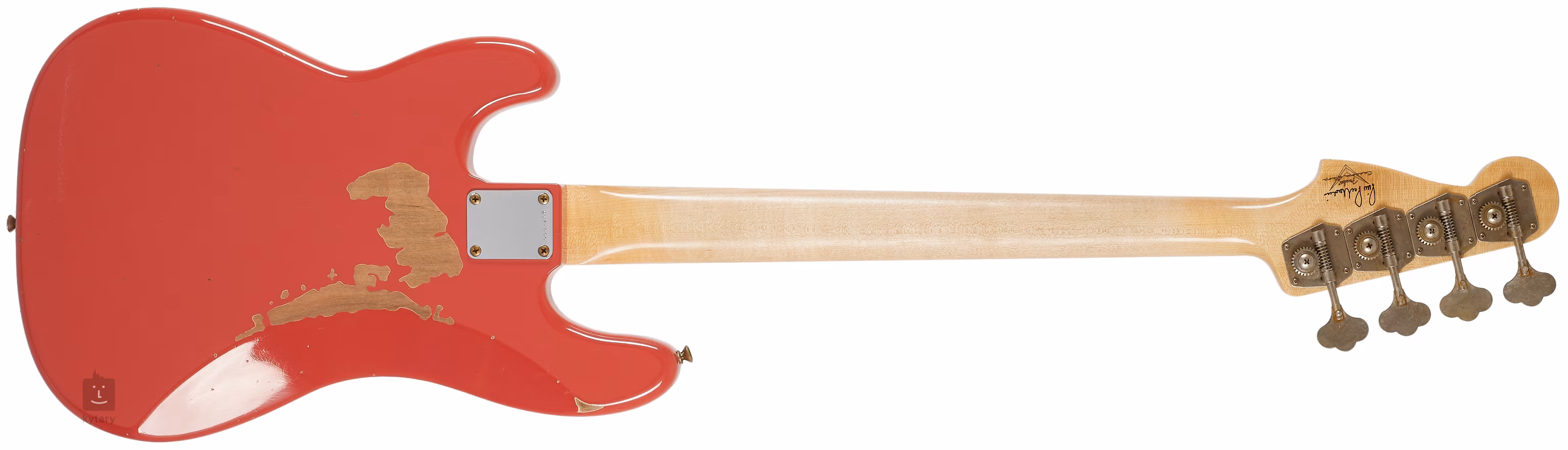 Pino Palladino Signature Precision Bass Fiesta Red over Desert Sand are un corp ușor din alder, un gât din arțar cu profil "C" și o claviatură din palisandru, un pickup Precision Bass single-coil split în stil vintage bobinat personalizat, un pickguard din carapace de țestoasă și corzi Thomastik-Infeld. Finisajul "Fiesta Red over Desert Sand" al lui Journeyman Relic oferă elemente de patină falsă pentru a se potrivi cu decenii de utilizare comună, mai degrabă domestică.