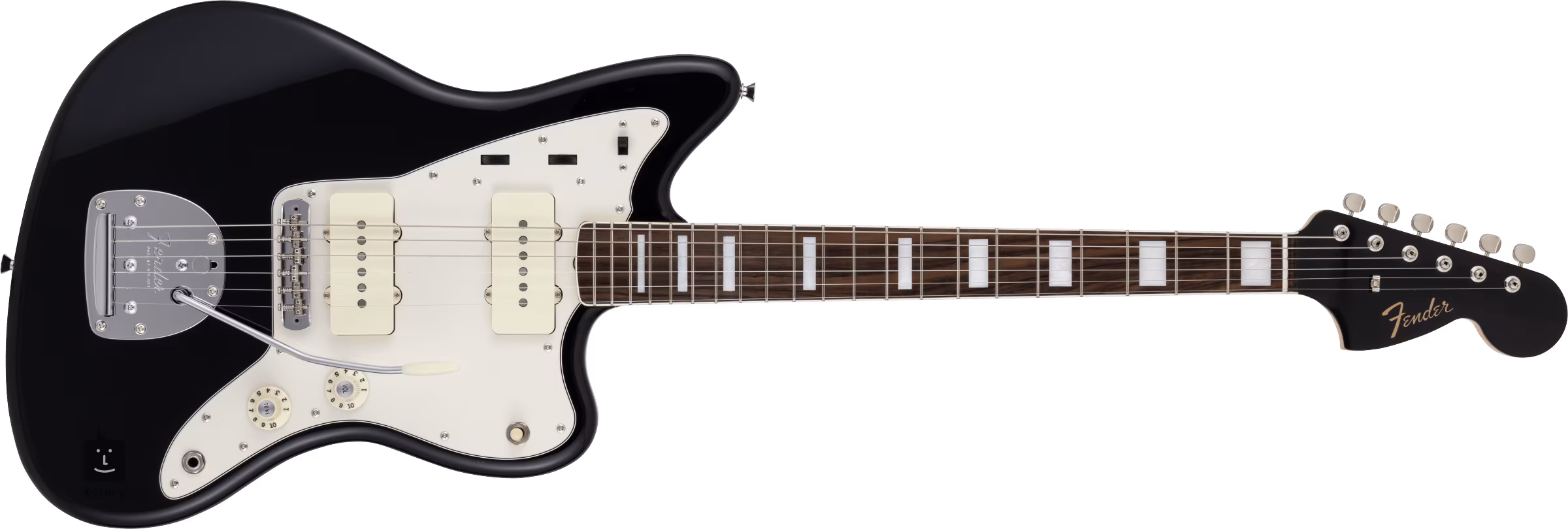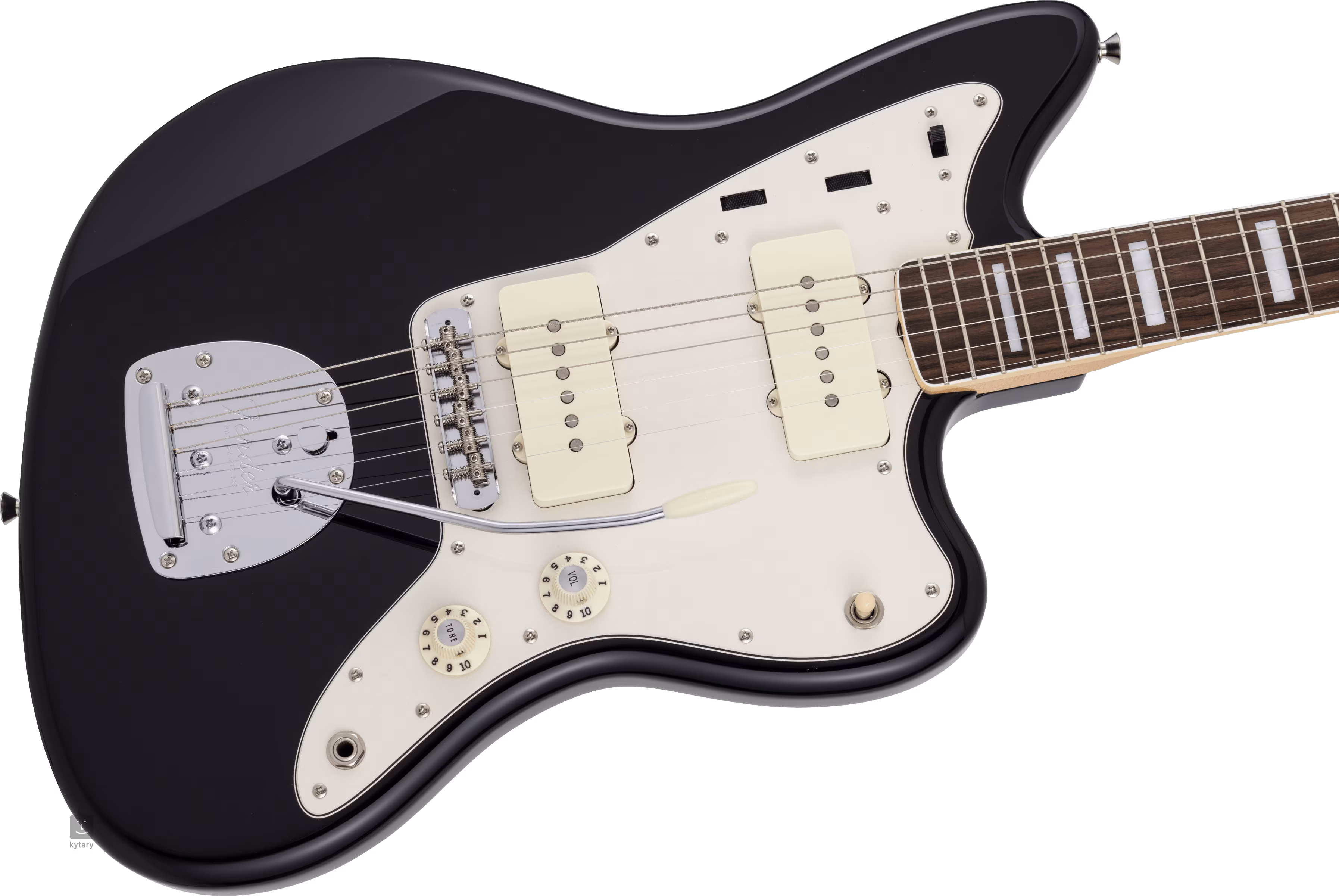 Cuvântul Jazzmaster din nume face aluzie la intenția inițială, dar acest instrument cu forma sa tipică de corp offset nu avea prea multe în comun cu jazzul - a câștigat popularitate printre muzicienii de pe scena muzicii alternative (de la surf rock la indie rock). Corpul de var al instrumentului este decorat cu un lac poliesteric lucios și finisaj negru. Gâtul din arțar cu profil "U" este lipit de o claviatură din lemn de trandafir prevăzută cu douăzeci și unu de frete de dimensiuni vintage. Orientarea claviaturii este facilitată de blocurile de poziție realizate din imitație de nucă de perle.