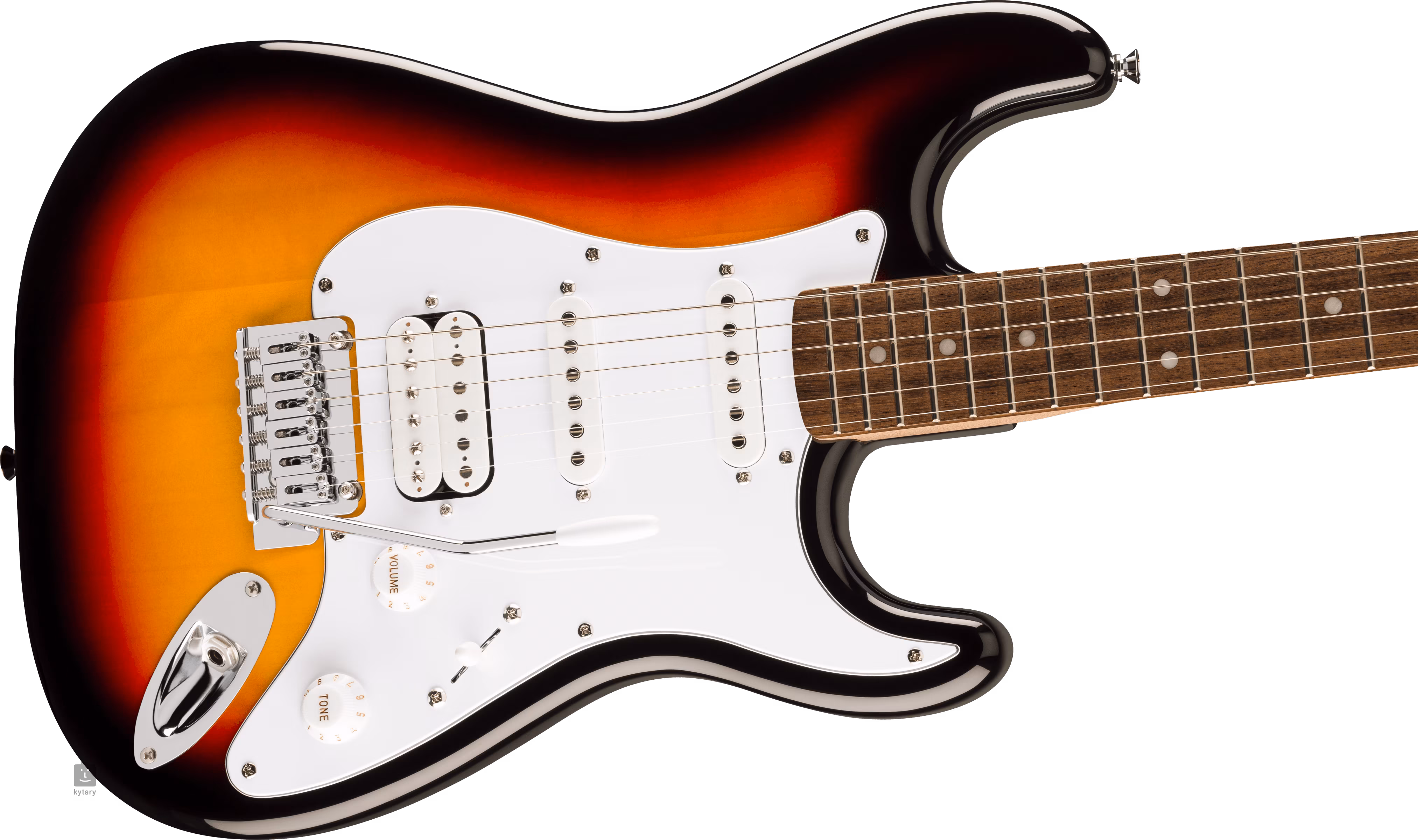 Fender Squier Affinity Series Stratocaster Junior HSS 3-Color Sunburst este un Strat cu un corp mai mic și un gabarit mai scurt (610 mm) care va fi pe placul adolescenților și al jucătorilor care preferă chitarele cu un corp mai compact și o claviatură mai ușoară. Corpul ușor de plop al instrumentului este acoperit cu un lac poliuretanic lucios. Gâtul de arțar cu șuruburi, cu un profil "C" mai îngust, este lipit de o claviatură de smochin prevăzută cu 20 de freturi Medium Jumbo. Orientarea claviaturii este facilitată de punctele de poziție din imitație de nucă de perle.