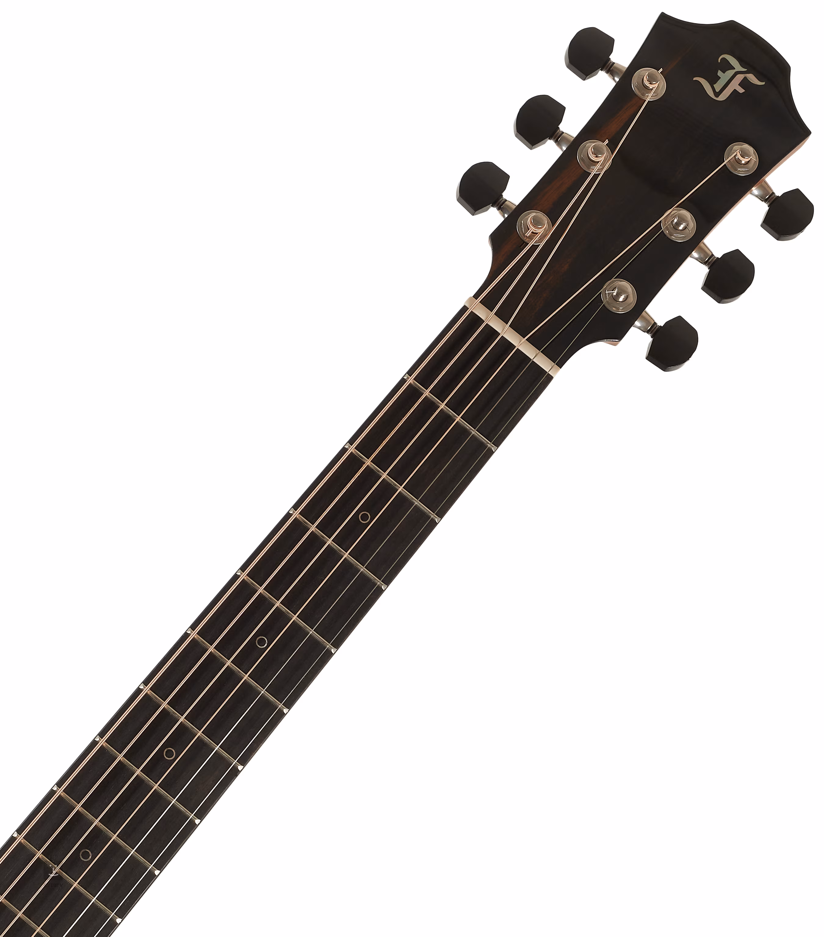 Aspectul atrăgător al chitarei este accentuat de o serie de detalii sub forma unei rozete formate dintr-un inel dublu încrustat cu abalone verde, a unui pickguard realizat din cinci straturi de linii contrastante alb-negru și a unor marcaje de poziție laterale liniare și circulare frontale din nucă de nucă. Pickguard-ul transparent lasă să iasă în evidență granulația naturală a lemnului, fără a afecta rezonanța plăcii de rezonanță. Acordarea stabilă este garantată de mecanica de top Gotoh 510 în patină argintie, cu clapete din abanos și angrenaj fin 1:21.