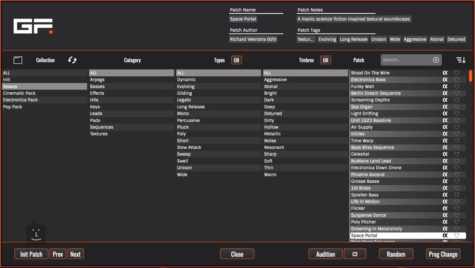 AXXESS este excelent pentru genurile electronice, cinematografice, synthpop, dance, ambient, rock, prog rock, hip hop și multe altele.