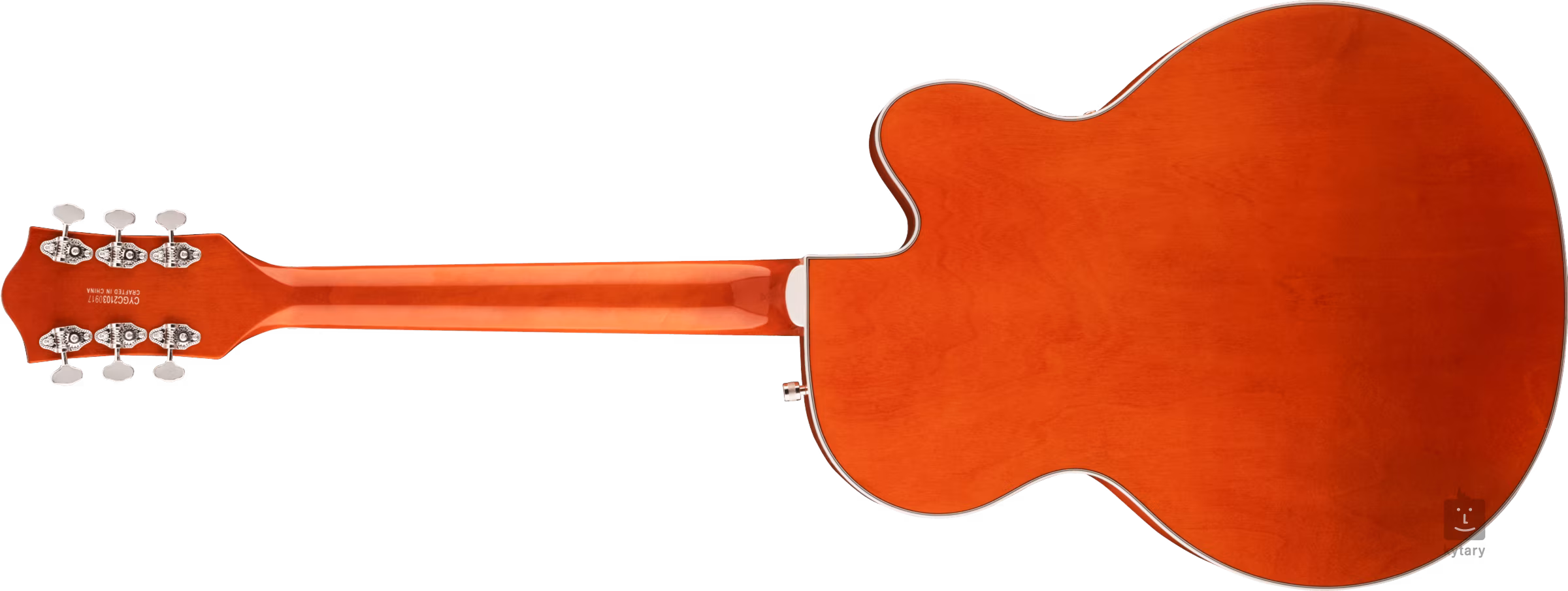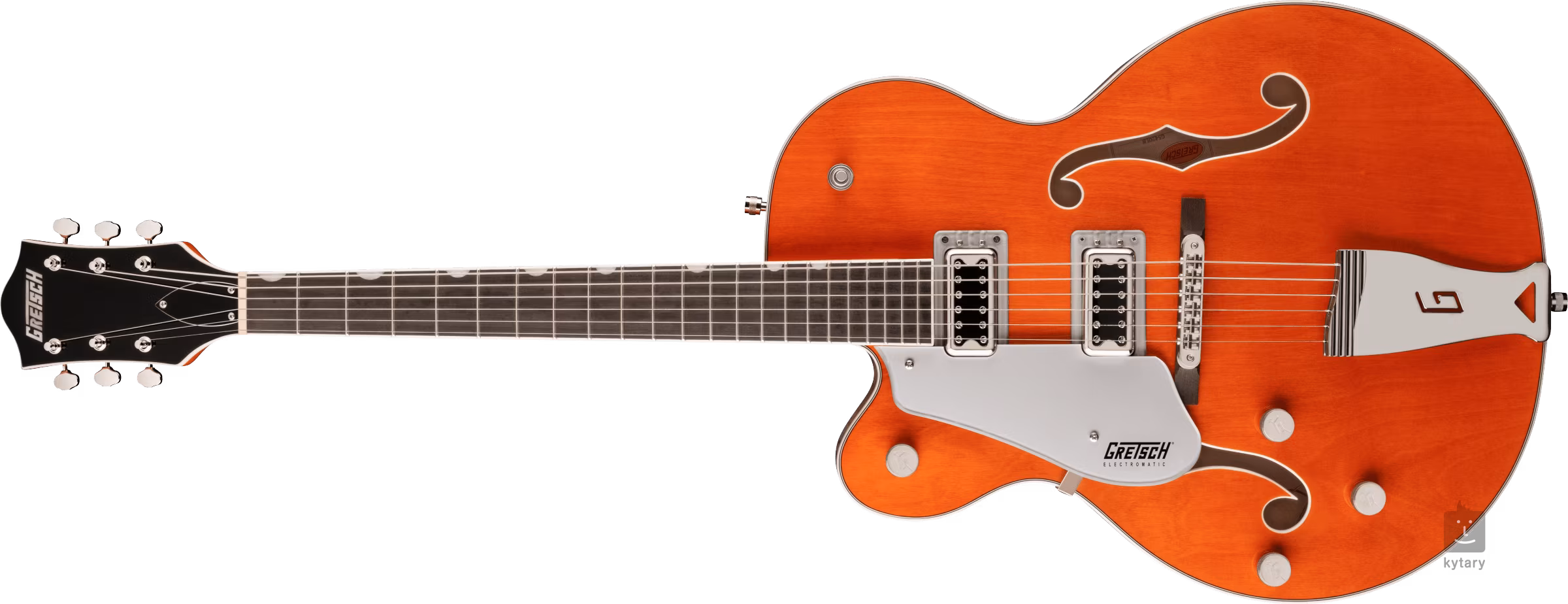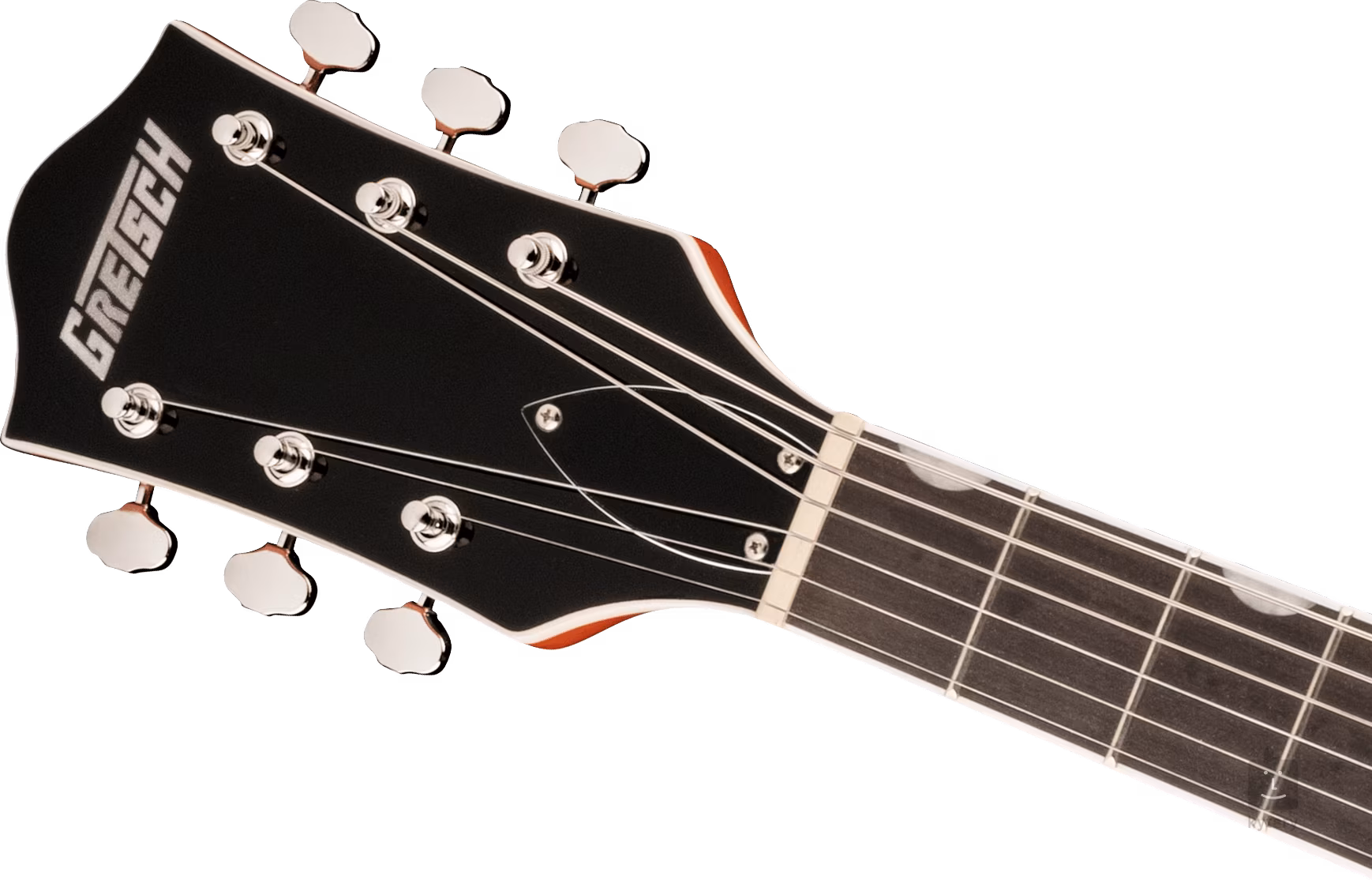 Corzile sunt ancorate prin intermediul unui Graph Tech NuBone zero fret în mașini de acordaj deschise în stil vintage și o coadă Adjusto-Matic așezată pe o bază de lemn în corzi. Designul elegant al chitarei este accentuat de finisajul Orange Stain, de legăturile de pe corp și de pe cap, de pickguardul argintiu Plexi cu logo-ul negru Gretsch și de feroneria din nichel.
