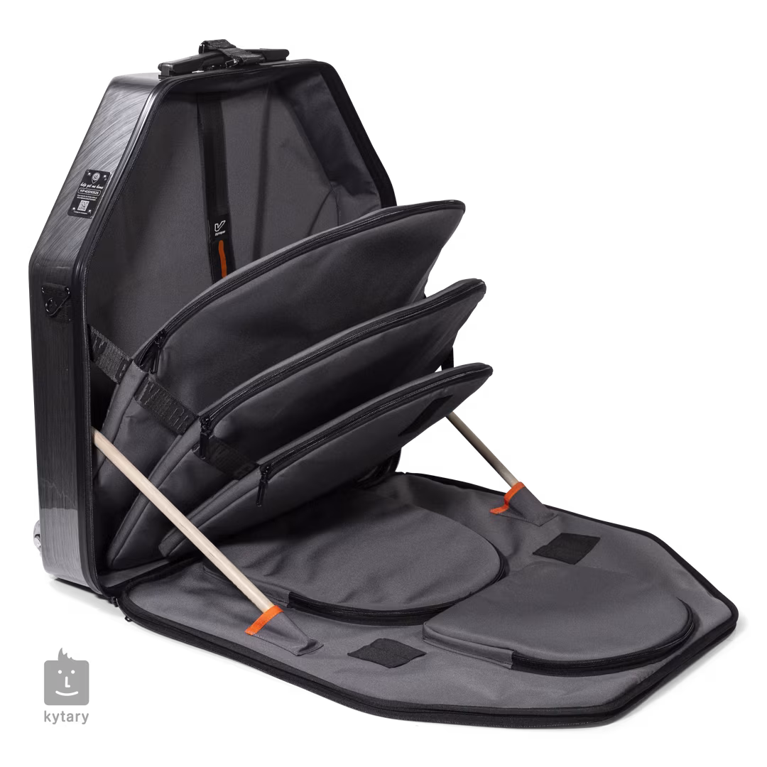 Această geantă găzduiește 5 buzunare pentru țambale de diferite dimensiuni (până la 24") și are roți detașabile și un mâner detașabil.