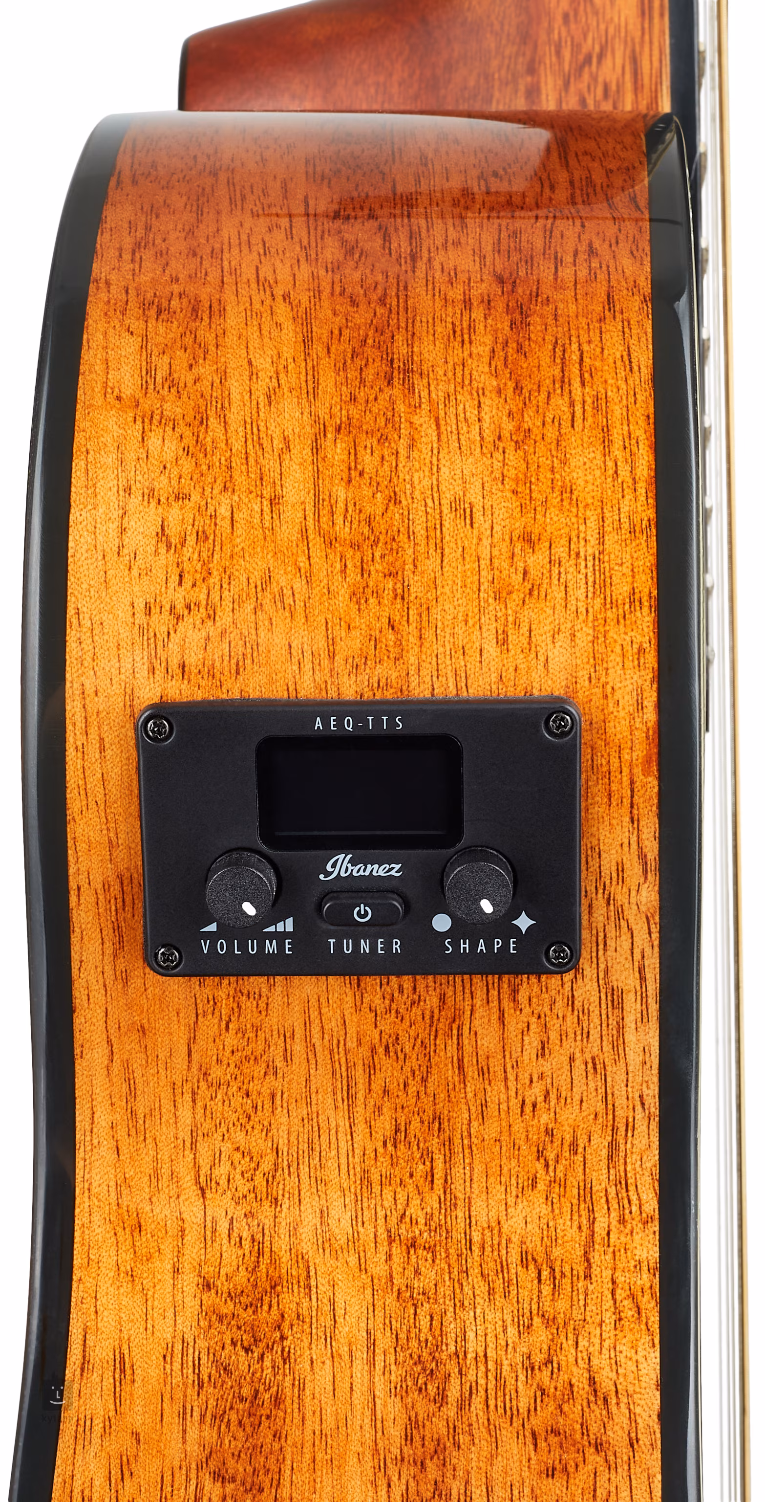 Volumul suficient pentru necesitățile de interpretare în public sau pentru a cânta cu o trupă este asigurat de sistemul electronic Ibanez AEQ-TTS cu un tuner integrat în burduful chitarei și un pickup piezo sub bloc. Corzile sunt adăpostite în mașini de acordaj Die-Cast cromate și o claviatură din lemn de smochin. Cuierul Ibanez Advantage oferă avantajele unei manevrări ușoare și o fixare fermă a corzilor față de modelele standard. Designul auster al instrumentului este pus în valoare de un ornament alb-negru și de o rozetă cu inele din imitație de mamă de perlă care contrastează cu schema de culori a corpului.