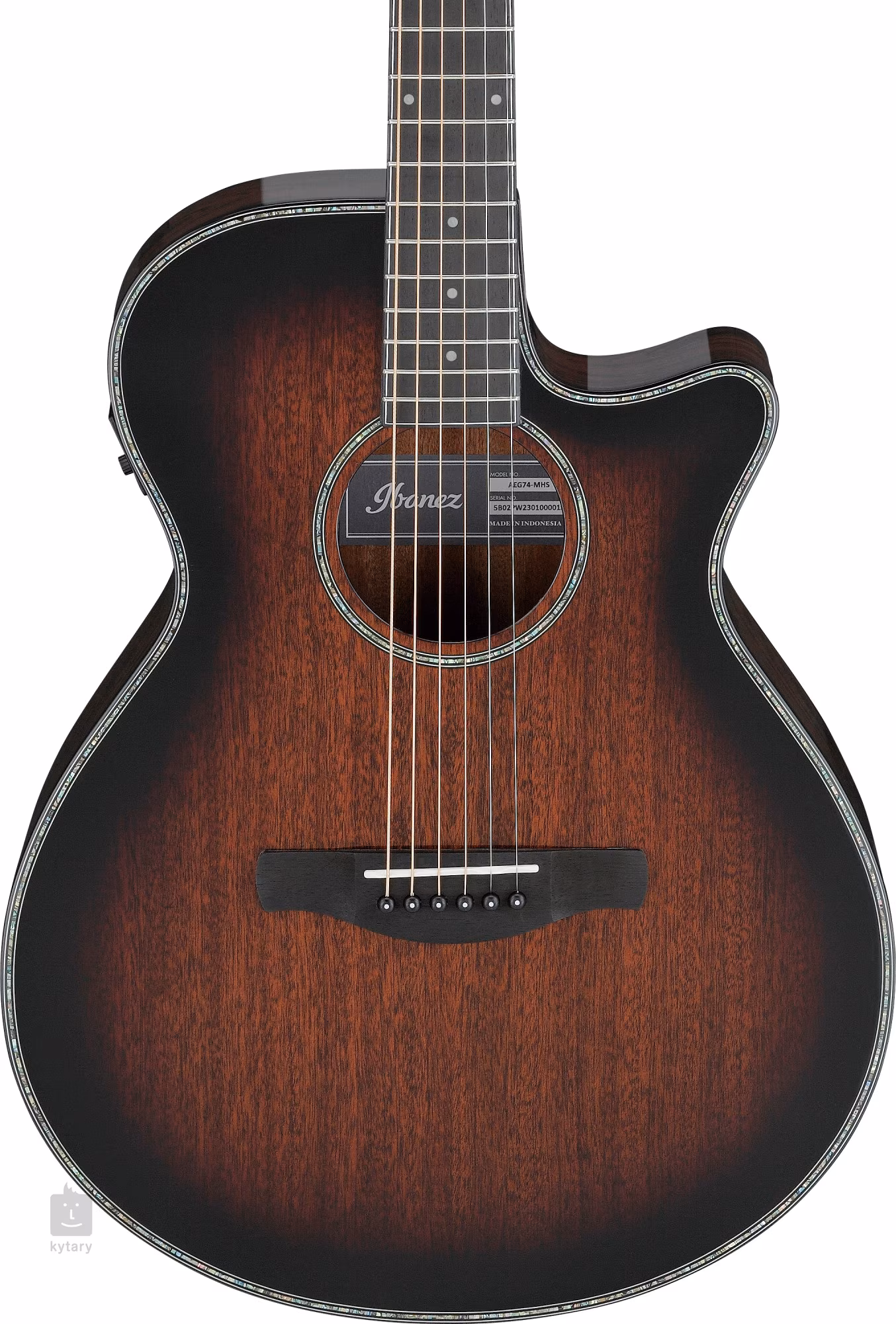 Partea frontală a AEG74-MHS este realizată din sapele laminat, în timp ce spatele și părțile laterale sunt realizate din bocot exotic laminat cu un model distinctiv. Gâtul din lemn nyatoh este lipit de o claviatură din abanos makassar cu 20 de fante. Potrivirea bună la cele mai înalte poziții ale claviaturii este facilitată de decupajul inferior al corpului.
