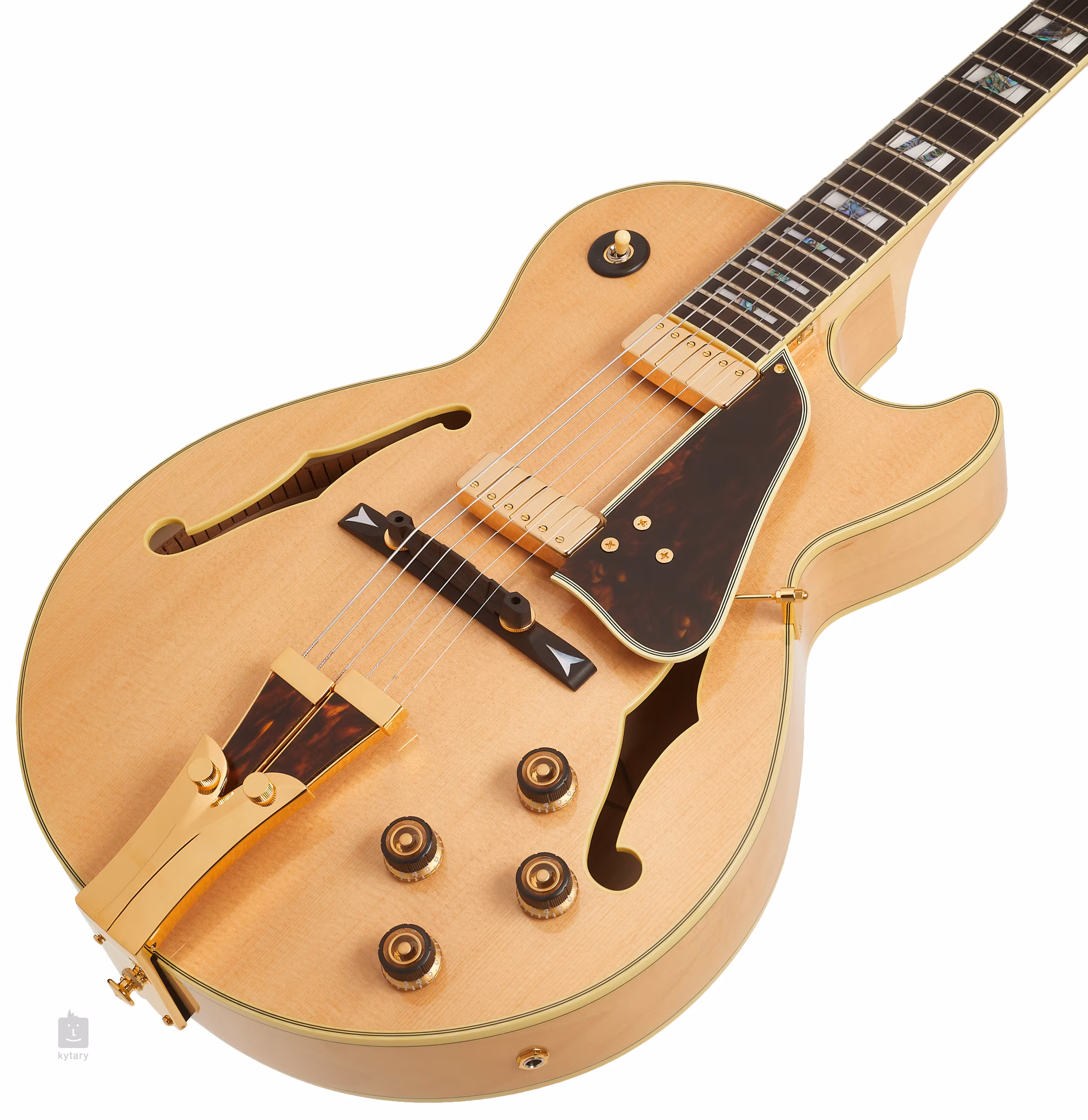 Corzile sunt montate în tunere Gotoh prin intermediul unei claviaturi din os și alamă și într-o coardă de trapez divizată prin intermediul unei claviaturi reglabile din abanos. Manopera frumoasă este accentuată de binding-ul multistrat al corpului, hardware-ul auriu, pickguard-ul cu imitație de carapace de broască țestoasă și găurile F tradiționale.