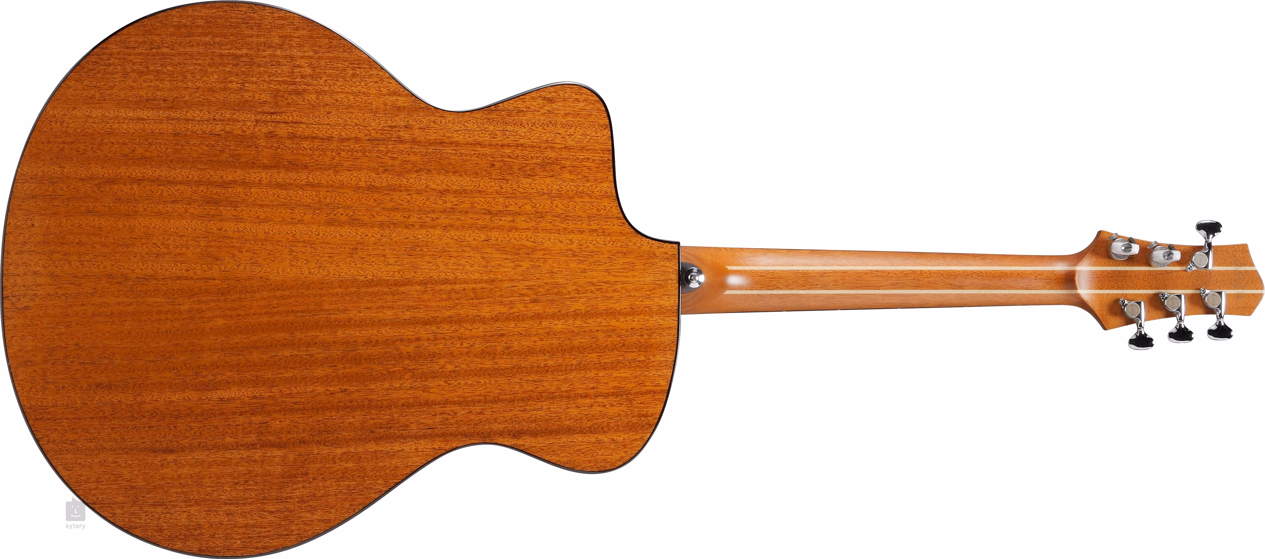 Cele două ieșiri jack ale chitarei oferă opțiunea de conectare stereo (semnale separate pentru pickup și microfon) și mono. Corzile sunt ținute în poziție prin intermediul unei șei din os cu zero fret și compensată de Gotoh cromat și mecanică de banjo netradițională (Keith Banjo Tuners Stainless Steel). Lucrarea de lux este accentuată de elemente din lemn sub formă de body binding, incrustații decorative pe fingerboard și rozetă.