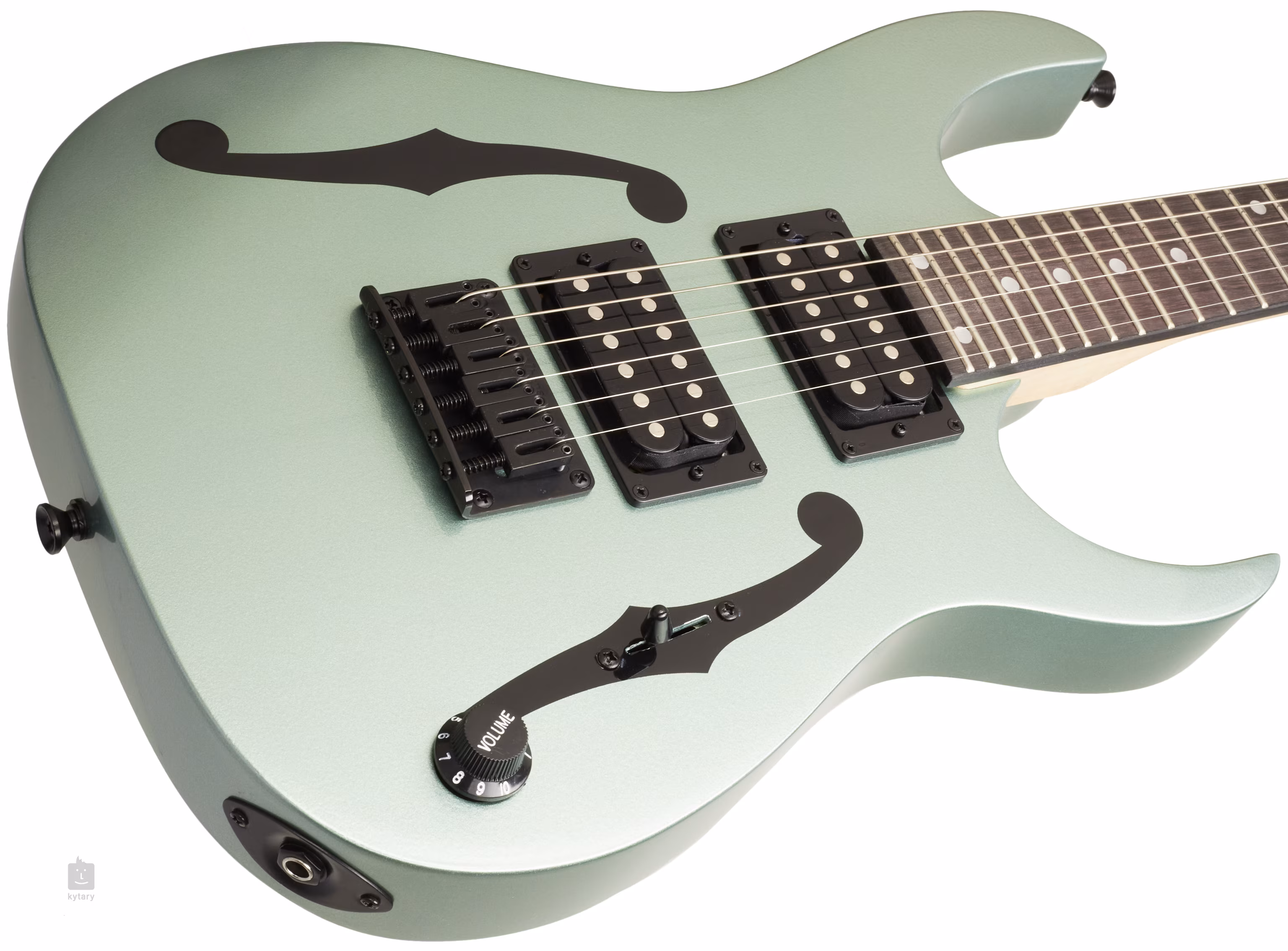 Corzile sunt montate în mecanismele de acordaj ale companiei și într-un cap solid Ibanez F106. Aspectul chitarei este pus în valoare de schema de culori Metallic Light Green cu design F-cutout și hardware negru.