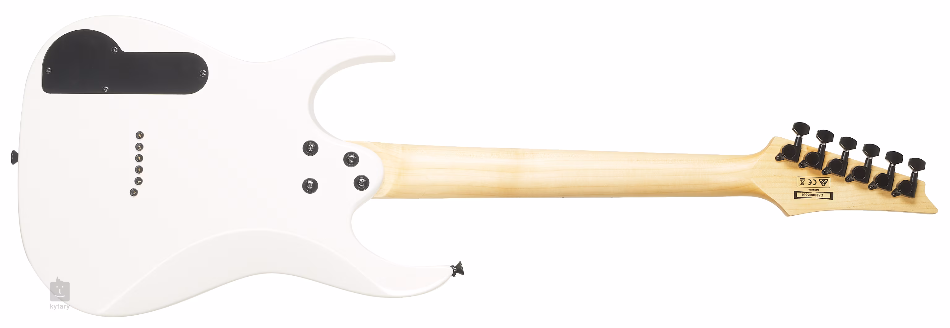 În acest caz, este vorba de o versiune mai mică a modelului semnat de Paul Gilbert. Chitara are un corp ușor din plop și, mai ales, un gât din arțar cu un diametru scurt de 564 mm și un cap inversat. Sunetul este captat de două humbuckere Infinity cu magneți Alnico și un selector de pickup standard cu trei poziții. În afară de aceasta, veți găsi doar controlul volumului pe corp. Corzile trec prin corp printr-un pod fix cu pietre reglabile. Feroneria este neagră.