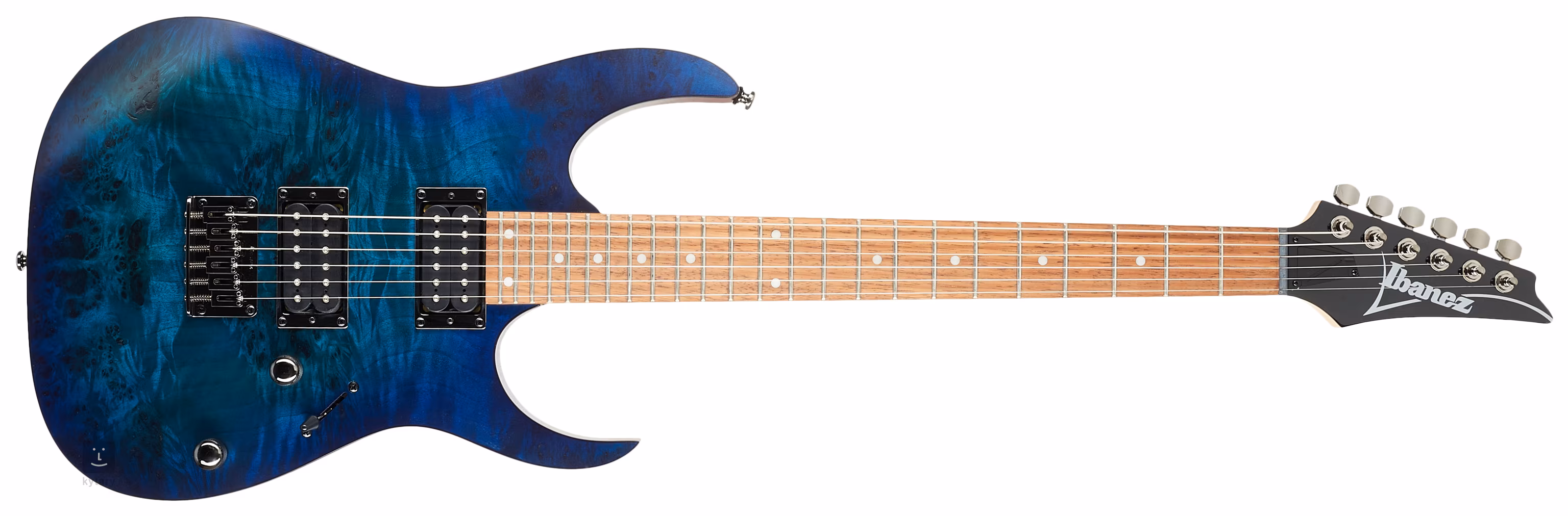 Corpul modelului RG421PB-SBF este realizat din meranti și un furnir spectaculos de plop cu burlane. Gâtul rapid din arțar cu profil Wizard III este lipit de o claviatură din jatoba prevăzută cu douăzeci și patru de fise de dimensiuni jumbo. Orientarea pe suprafața claviaturii este facilitată de punctele albe de poziționare.