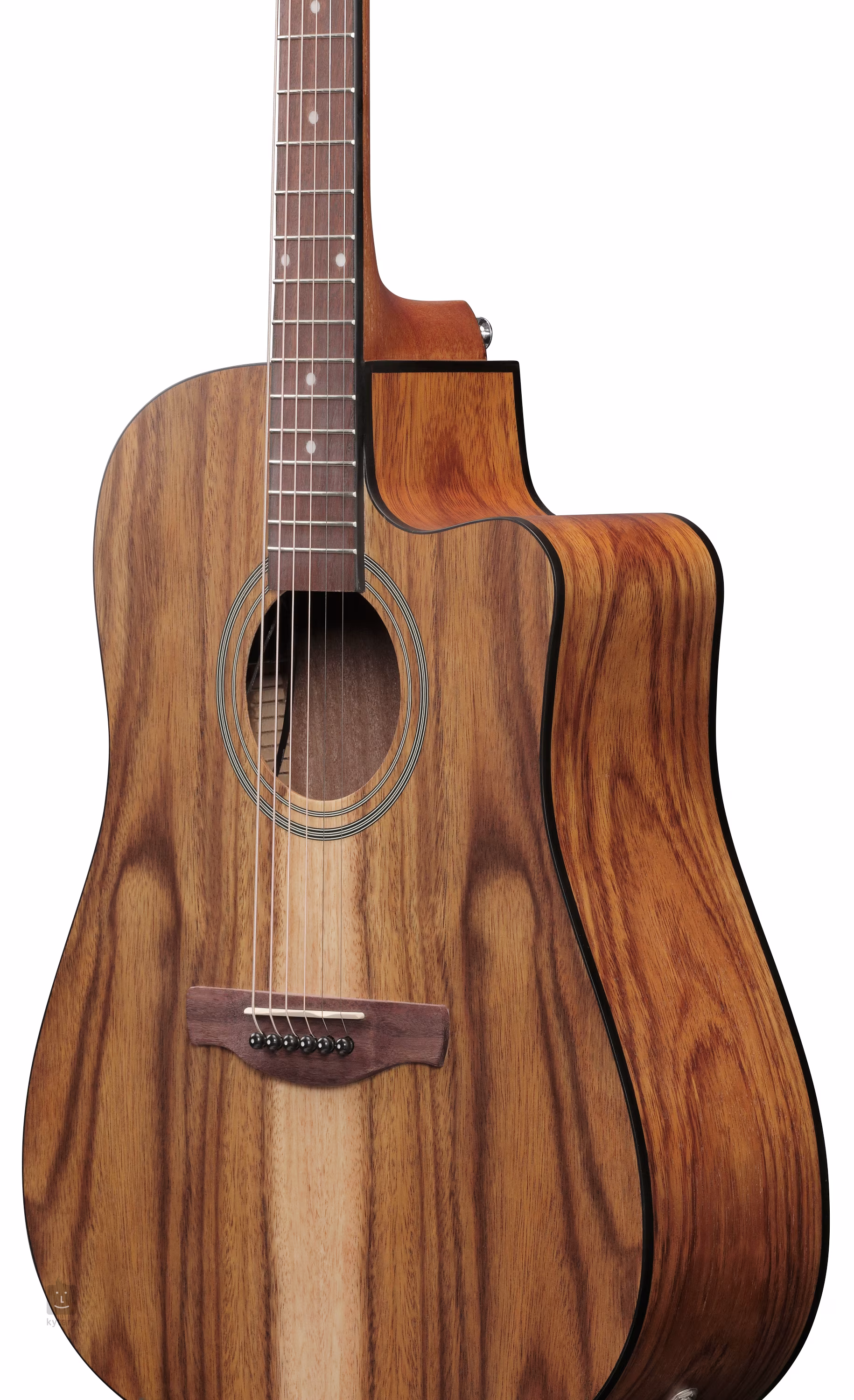 Corpul mare și rezonant al chitarei electroacustice V40WSCE-OPB Dreadnought este realizat din lemn exotic stratificat White Siris (Albania). Gâtul din lemn de meranti este lipit de o claviatură din nandu cu 20 de fante. Un decupaj inferior al corpului facilitează atingerea pe pozițiile superioare ale claviaturii.