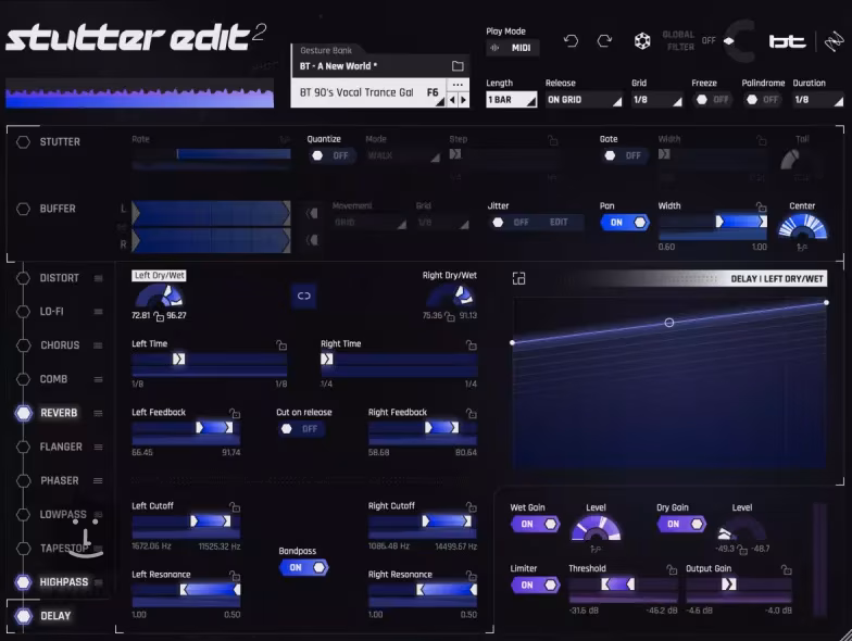 - Efecte ritmice și tonale controlate MIDI - adaugă mișcare și dinamică mixurilor dvs.