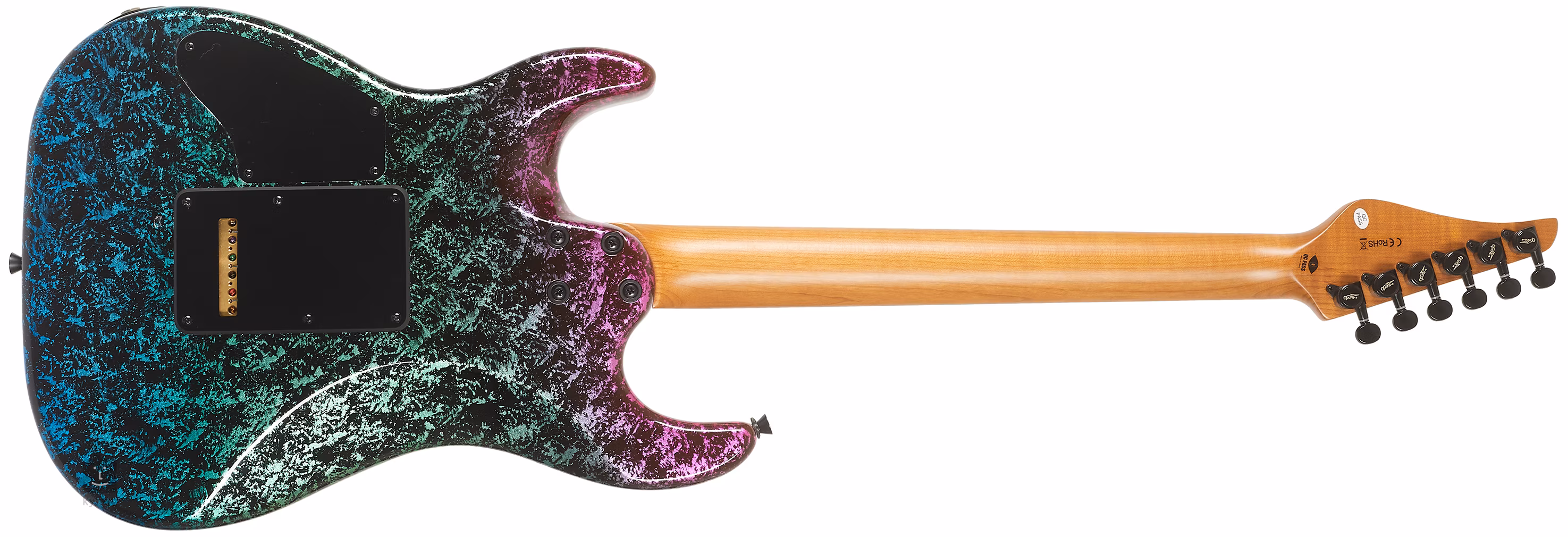 Două humbuckere custom wound cu semnal de ieșire ridicat (chilă de 20k Ohm) oferă un sunet cald corespunzător pe care îl veți aprecia în rock contemporan, metal și multe alte genuri. Reglați caracterul sunetului cu comenzile de volum și ton și comutatorul de pickup cu trei poziții. Corzile sunt ținute în mașini de acordaj cu blocare și un tremolo cu o singură tură.