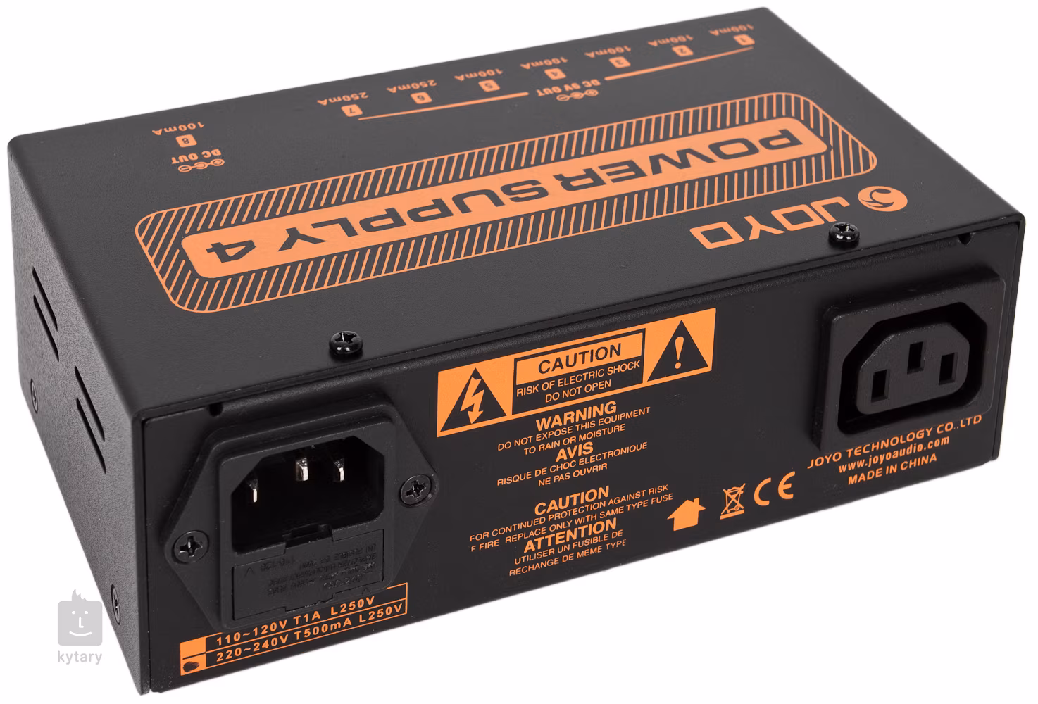 Joyo JP-04 este un multiadaptor care rezolvă simplu și eficient sursa de alimentare a pedalierului dvs. Este echipat cu un total de 8 ieșiri izolate, dintre care una oferă comutare între 12 și 18 V, iar celelalte șapte sunt de 9 V (5x 100 mA, 2x 250 mA). În plus, acesta oferă protecție la scurtcircuit sau supratensiune pentru o fiabilitate absolută. Sunt incluse și cablurile de conectare necesare.