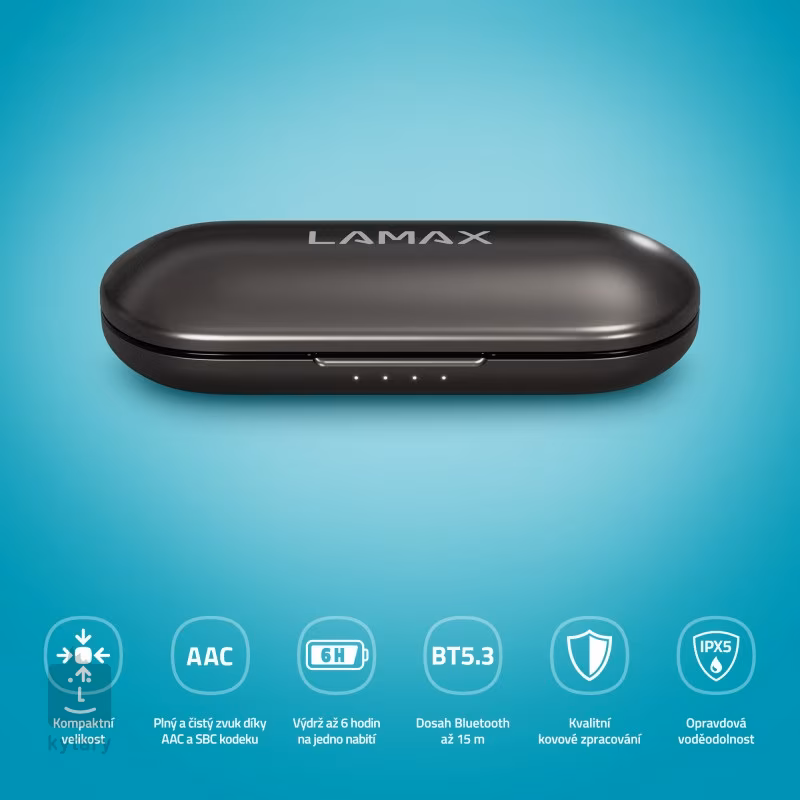 Căștile fără fir Lamax SteelTones1 vă vor impresiona prin sunetul excelent, microfonul de înaltă calitate, ergonomia perfectă și stabilitatea celei mai recente transmisii fără fir Bluetooth versiunea 5.3 și compatibilitatea cu codecurile SBC și AAC. Sunt disponibile comenzi tactile intuitive și opțiuni de asistență vocală.