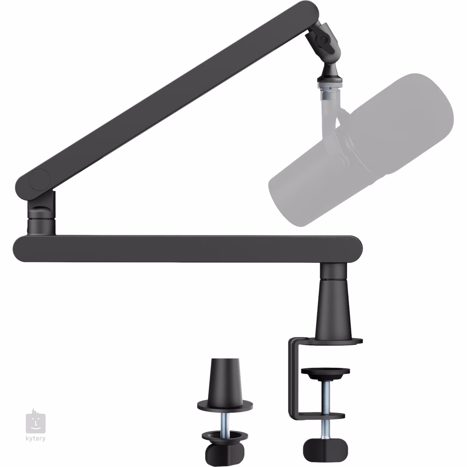 Brațul trepiedului are o lungime de 710 mm și permite ajustarea infinită a înălțimii de la 0-555 mm, ceea ce facilitează ajustarea microfonului la nevoile dvs. exacte - indiferent dacă înregistrați stând jos sau în picioare. Trepiedul poate fi atașat la o masă cu o clemă sau printr-un grommet, economisind spațiu pe birou și crescând flexibilitatea de utilizare.