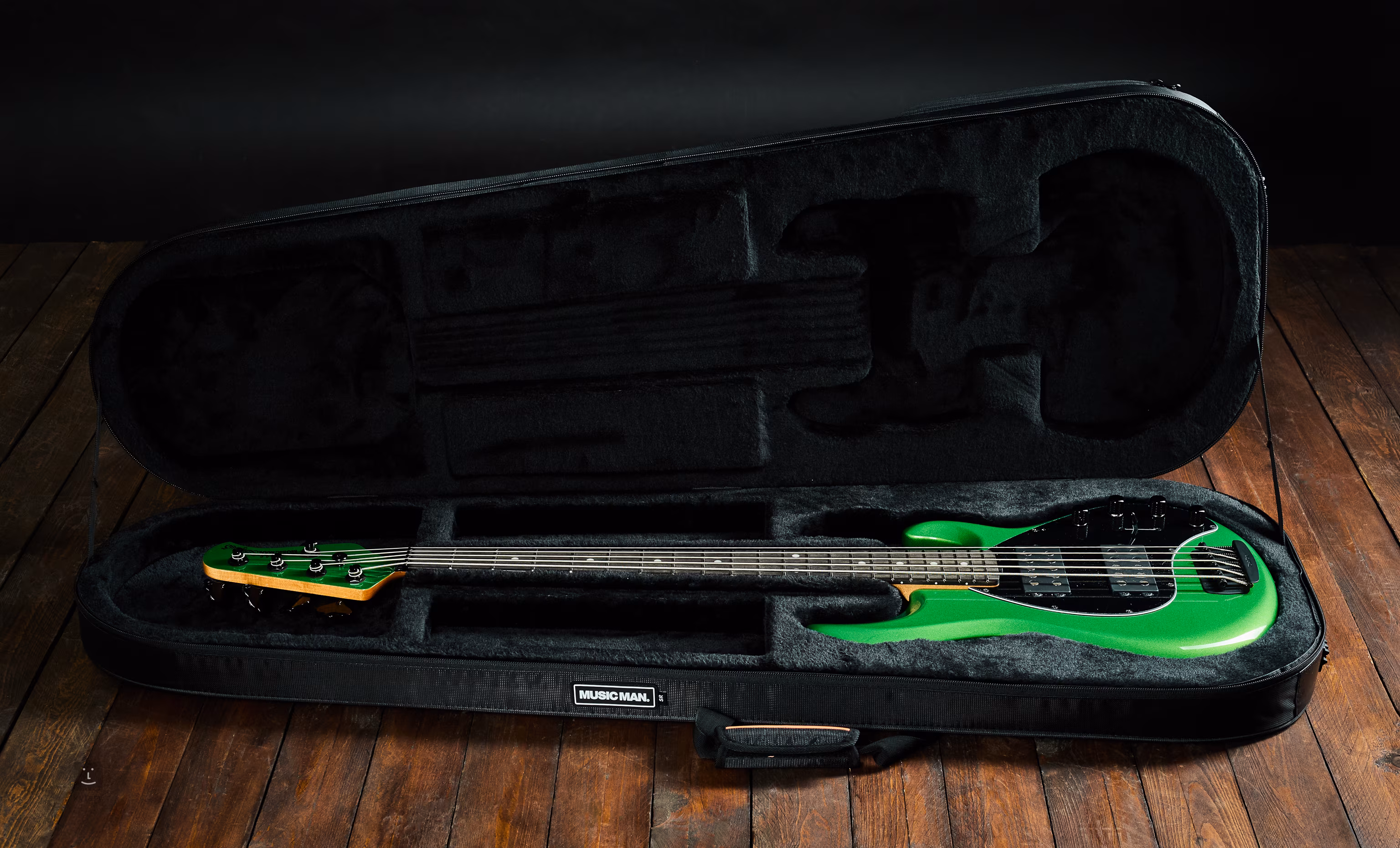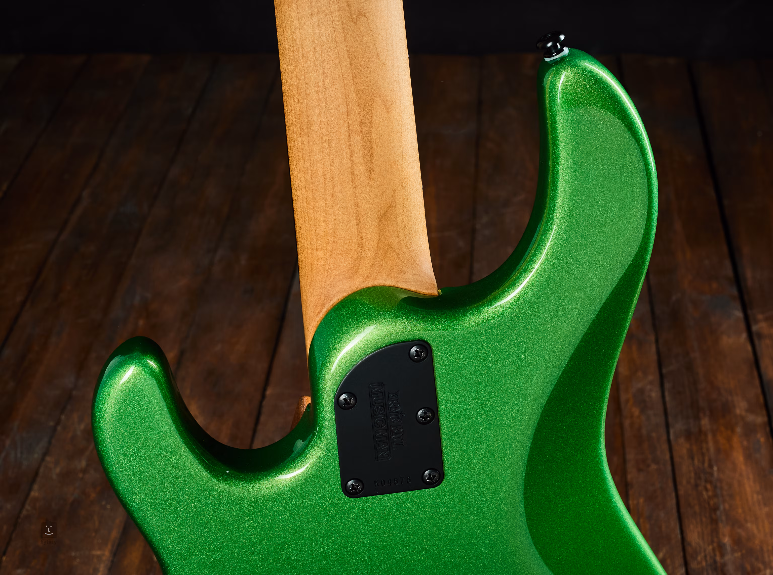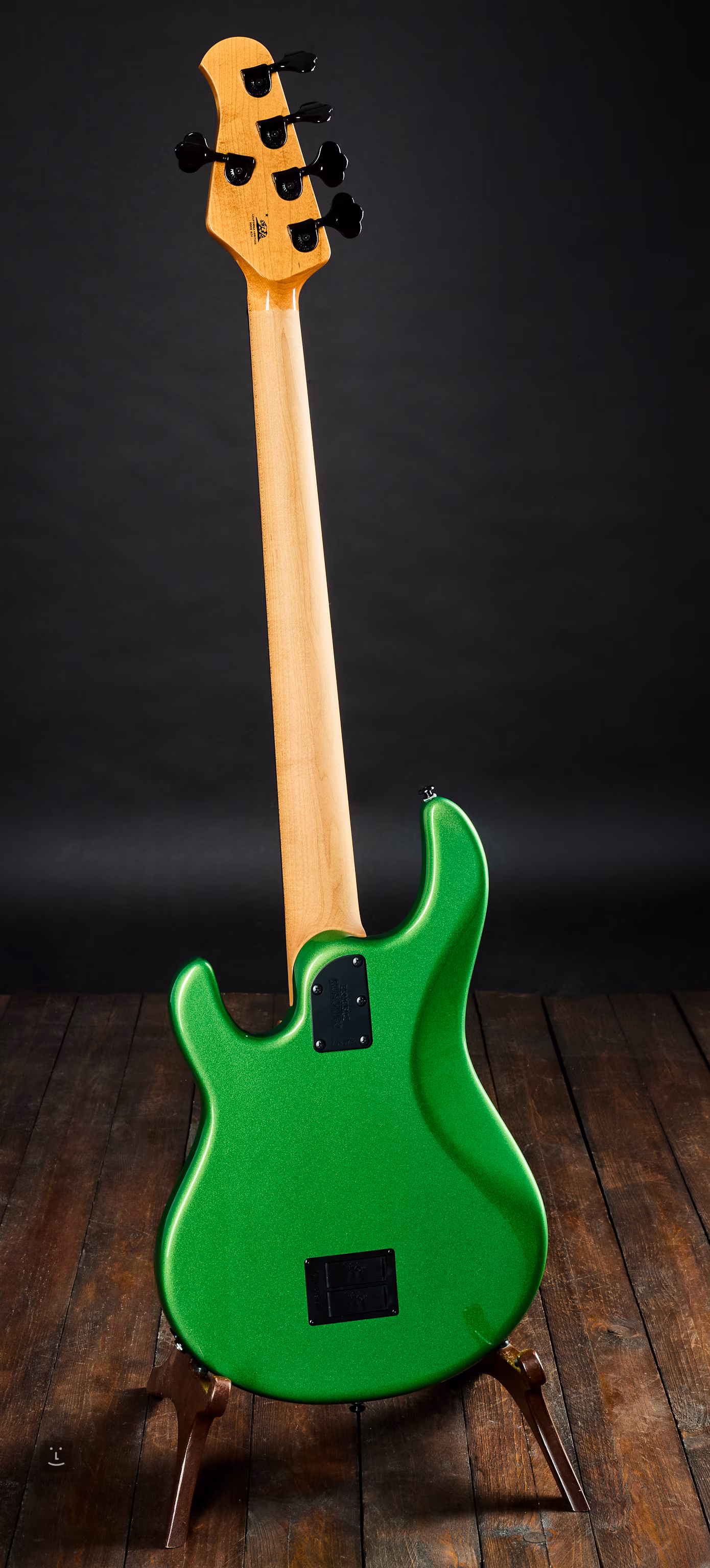 Gâtul este din arțar copt; claviatura este din abanos cu 22 de freturi și rază de 11". Electronica este alimentată de o pereche de baterii de 9V și include două humbuckeri Music Man cu magneți din neodymium. Mecanismele de acordaj sunt ușoare și, ca și tetiera, de culoare neagră.