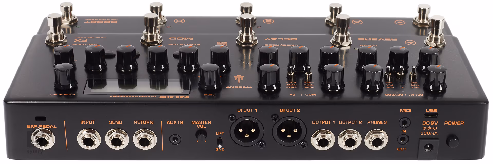 Zece blocuri de efecte ale procesorului de efecte pot fi utilizate simultan. De asemenea, zece footswitch-uri sunt folosite pentru a activa presetările, pentru a comuta între bănci, pentru a comuta secțiunile de efecte, pentru a activa tunerul, funcția de amplificare și pentru a controla looper-ul integrat. Secțiunile de efecte separate Delay/Reverb și MOD/FX oferă delay (BBD, Tape, Digital), reverberație (Spring, Plate, Hall) și chorus, tremolo, phaser, compresor, filtru, pitch shifter și alte efecte de modulație. Secțiunile de efecte dispun de controale tradiționale - designul general al procesorului de efecte se va potrivi jucătorilor care preferă să răsucească potențiometre decât să scormonească prin baze de date și să studieze manuale.