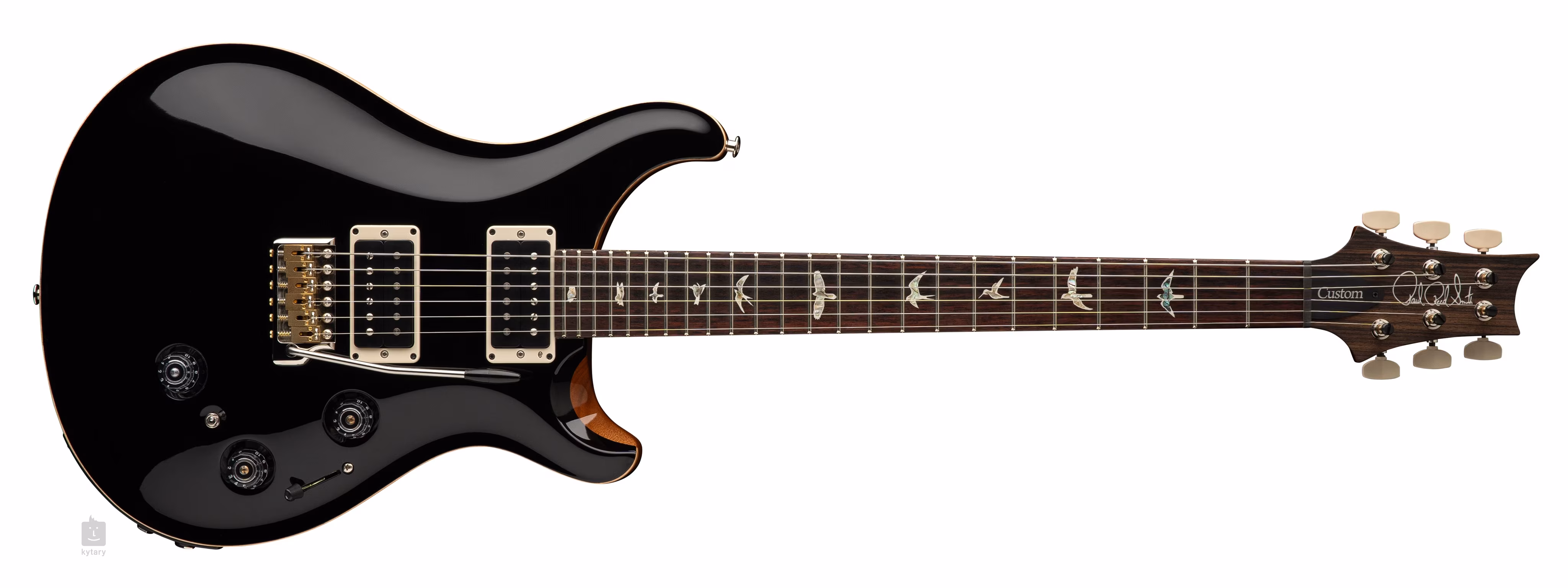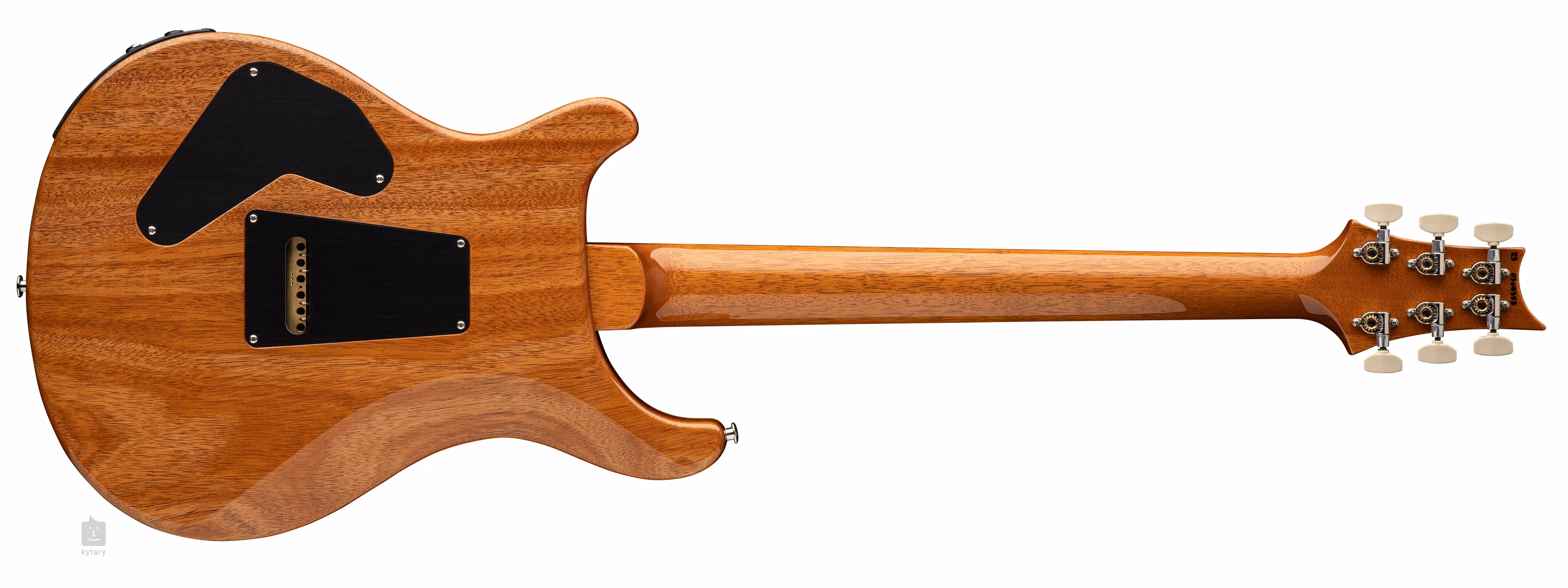 Modelul Custom 24 Piezo Black Top (Natural Back) atrage atenția de la prima vedere cu combinația sa de top din arțar negru lucios și corp din mahon. Lipit de gâtul din mahon dintr-o singură bucată cu profil Pattern Thin se află o claviatură din lemn de trandafir prevăzută cu douăzeci și patru de fante. Orientarea pe claviatură este facilitată de marcajele de poziție marca PRS sub forma unor siluete de păsări din nucă de perle.