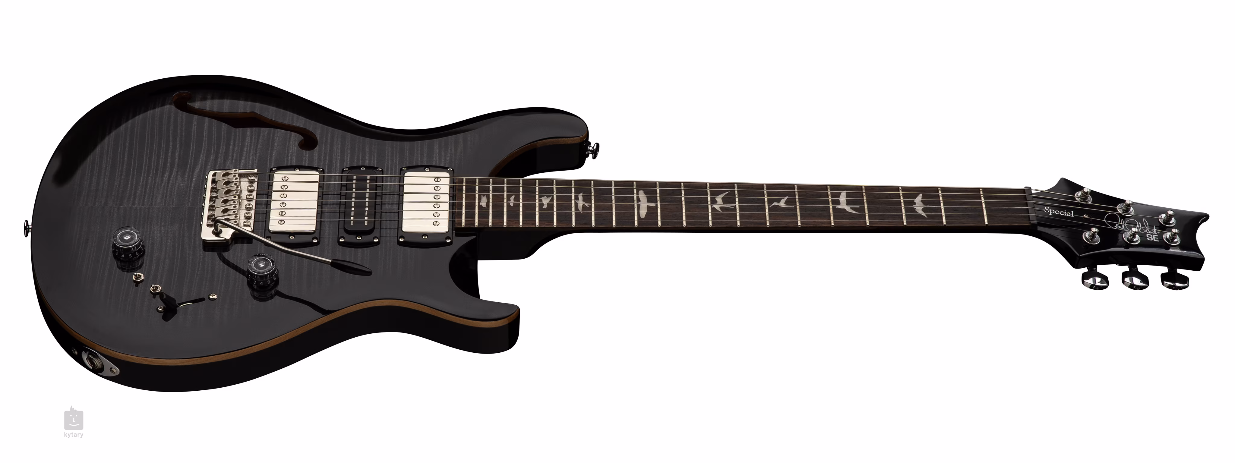 Corpul PRS SE Special Semi-Hollow Charcoal Burst din mahon single F-cutaway este împodobit cu un top din arțar și un top spectaculos din furnir de arțar flambat. Tăietura Shallow Violin aduce calitatea de joc a instrumentului mai aproape de cele mai scumpe modele American Core Series. O claviatură din lemn de trandafir cu douăzeci și două de fante este lipită de un gât din arțar cu profil Wide Thin. Marcajele de poziție sub formă de siluete de păsări facilitează orientarea pe claviatură.