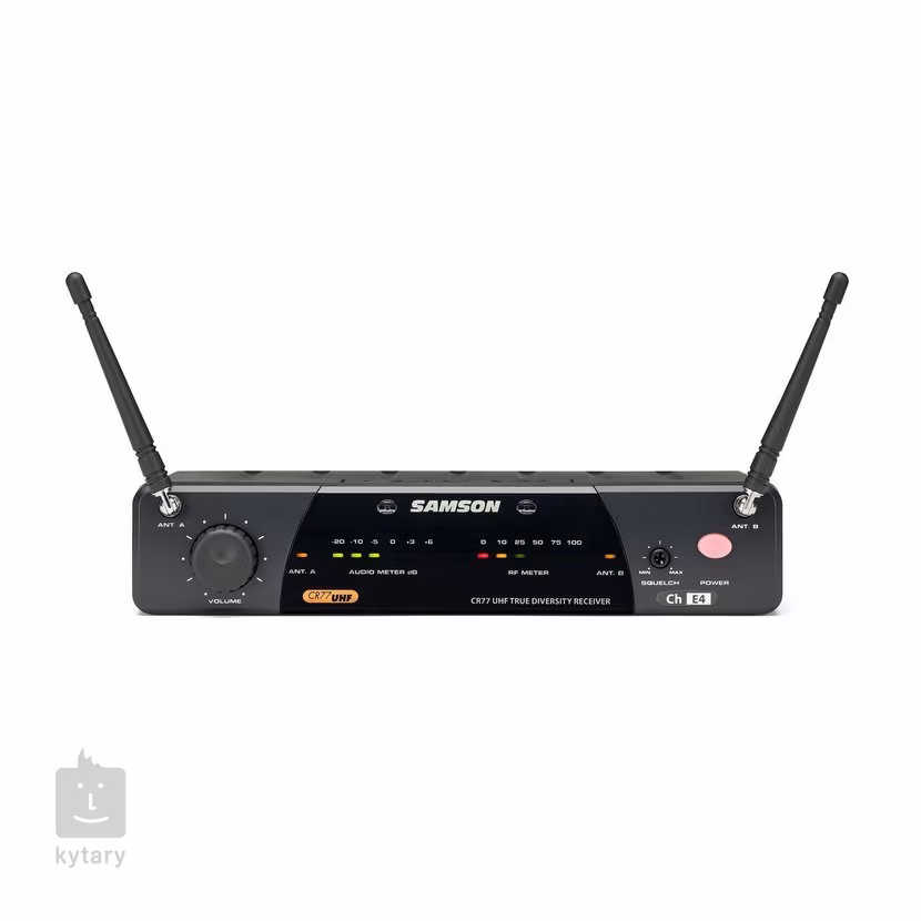 Receptorul CR77 oferă două antene interne și comenzi intuitive pentru conectarea instantanee a unui microfon fără fir. Partea frontală a receptorului este prevăzută cu LED-uri de semnal RF și de volum, un buton de volum și un potențiometru Squelch pentru a controla raza de acțiune a microfonului și eliminarea ulterioară a zgomotului ambiental. Partea din spate oferă ieșiri XLR și Jack pentru conectarea la alte echipamente și un comutator de semnal de ieșire Mic/Line.