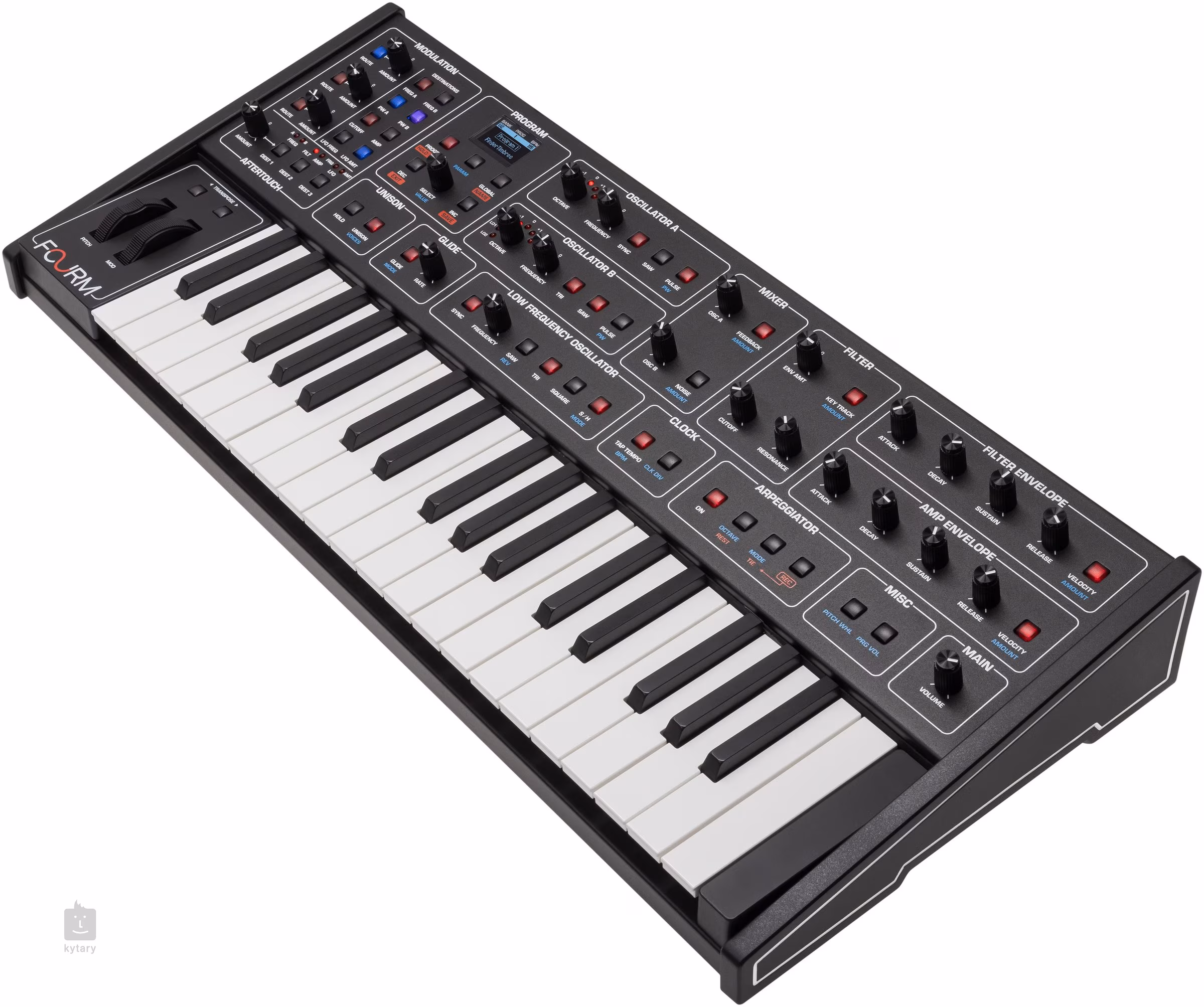 Sequential Fourm este un sintetizator analogic compact care combină arhitectura tonală legendară a Prophet-5 cu expresivitatea modernă și comenzile intuitive. Dispune de patru voci complet analogice cu o pereche de oscilatoare per voce, selecție simultană a formei de undă și un filtru low-pass clasic cu patru poli rezonanți cu funcție de compensare a basului pentru un sunet dens și echilibrat pe întregul spectru.