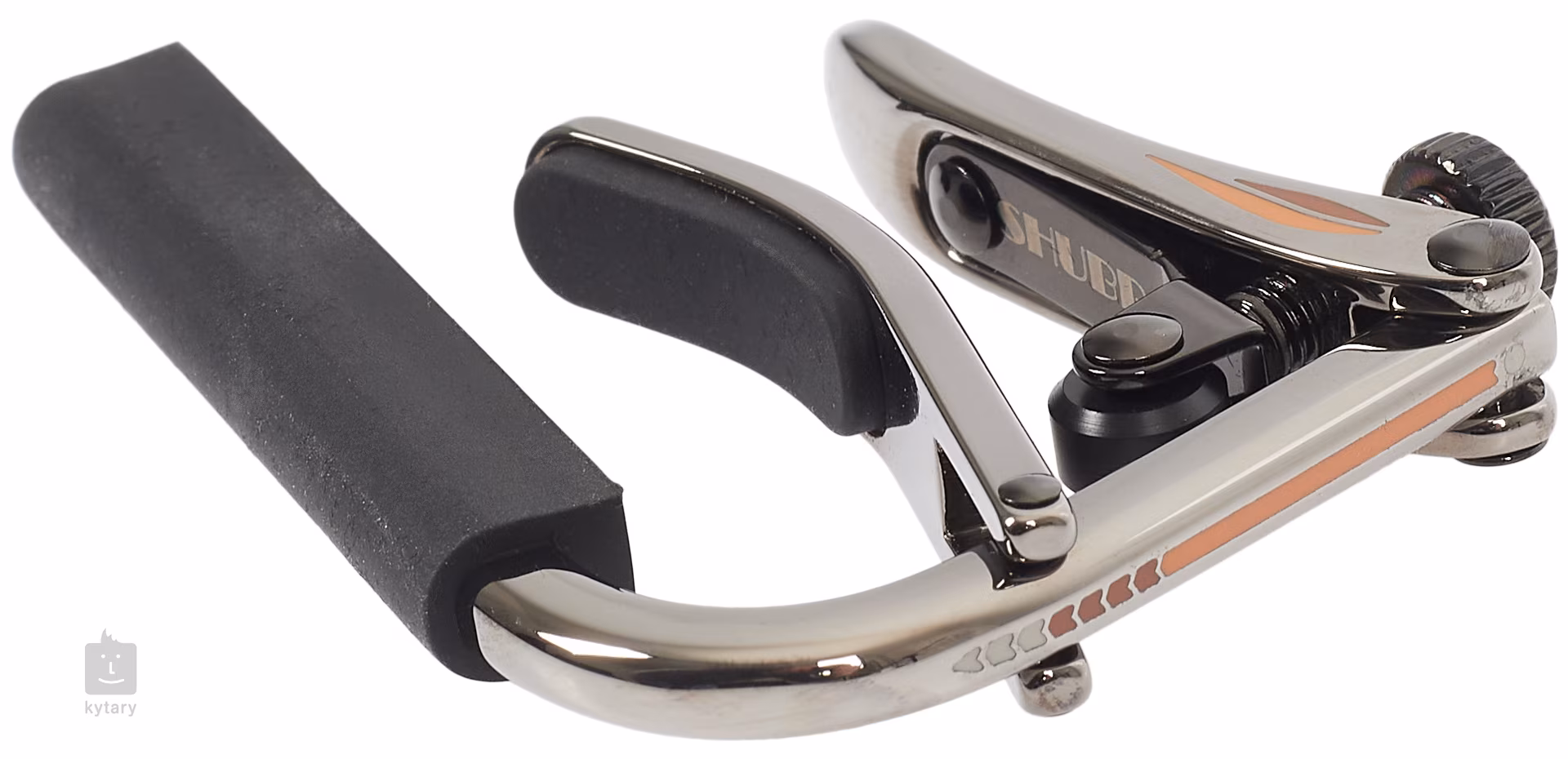 Este o capotă cu un design tipic pentru Shubb, care combină simplitatea cu fiabilitatea și funcționalitatea ridicată. Este fabricat din alamă durabilă, corzile sunt ținute în poziție de un cauciuc solid de înaltă calitate care se comportă ca burta unui deget - nu scoate corzile de pe axă, ci le transferă tensiunea uniformă, astfel încât corzile să mențină acordajul corespunzător. În plus, tensiunea poate fi reglată liber folosind funcția de presiune reglabilă. Datorită formei inteligente a fiecărei componente, capodastrele sunt ușor de pus și de scos și, de asemenea, pot fi ușor poziționate în orice punct de pe gât.