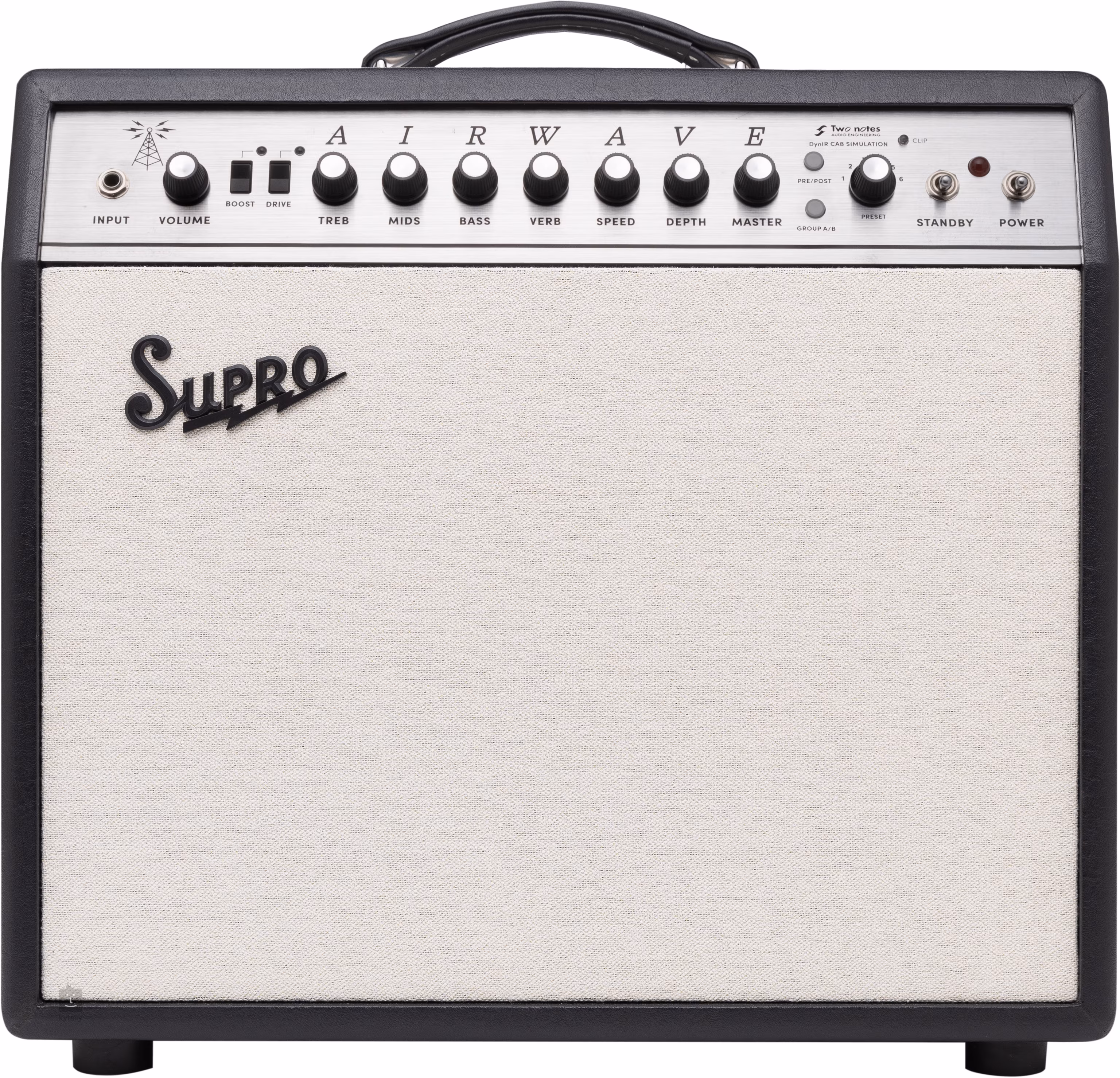 Marea atracție a Airwave este software-ul de modelare DynIR de la Two Notes, care poate emula o varietate de instrumente Supro vintage și moderne. În total, există șase instrumente moderne, șase vintage și șase boutique (difuzor + amplificator). Veți avea de ales între difuzoare mici și mari (de la 1x 8" la 1x 15") și puteți alege, de asemenea, între opt tipuri diferite de microfoane. Simulările individuale sunt ușor accesibile cu douăsprezece presetări din fabrică care pot fi ușor rechemate și editate.