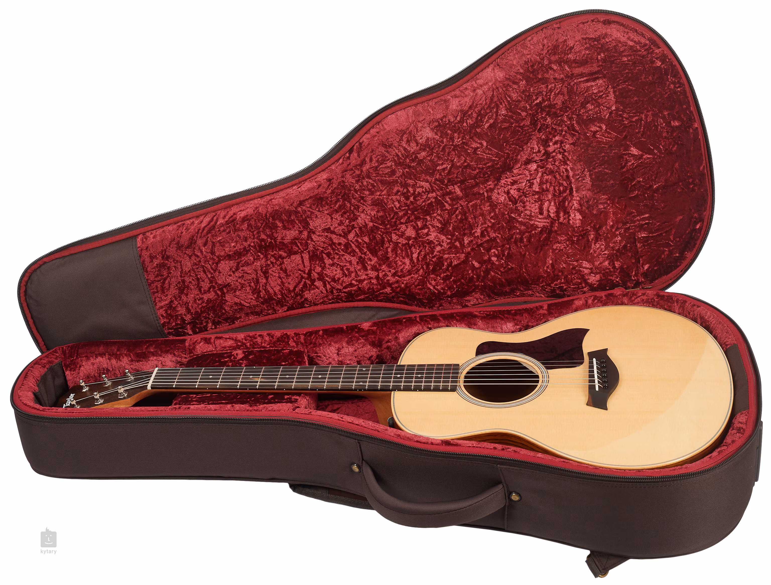 Partea frontală a chitarei este realizată din molid Sitka masiv, în timp ce spatele și părțile laterale sunt realizate din lemn de trandafir laminat. Gâtul de mahon este lipit de o claviatură de abanos prevăzută cu douăzeci de fise. Stabilitatea acordării este garantată de prinderea corzilor în claviatura de abanos și de mecanismele Taylor din nichel.
