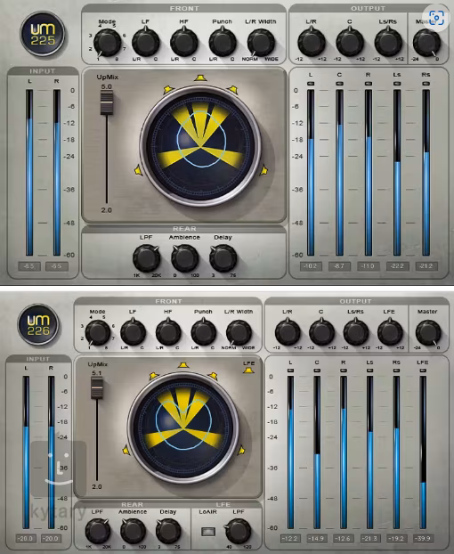 Plugin-ul UM225 / UM226 de la Waves este un instrument pentru convertirea pistelor audio stereo în format surround 5.0 sau 5.1. În plus, UM226 include o funcție LoAir pentru a adăuga o octavă de ton armonic inferior, ideal pentru a obține un "zgomot" mai profund în frecvențele joase. Acest plugin este potrivit pentru upmixarea de filme, emisiuni TV sau muzică.