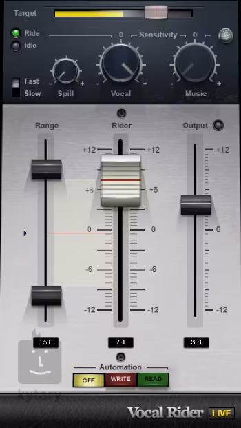 Waves Vocal Rider este un plugin conceput pentru egalizarea automată a volumului vocalelor în timp real. Acesta permite utilizatorilor să stabilească un nivel de volum țintă, iar plugin-ul se ocupă de restul, eliminând necesitatea de a trasa manual curbe de automatizare sau de a utiliza un compresor care ar putea afecta sunetul prea mult. Vocal Rider este potrivit pentru producția muzicală, podcast-uri și comentarii video, în timp ce nu provoacă latență, făcându-l ideal pentru performanțele live.