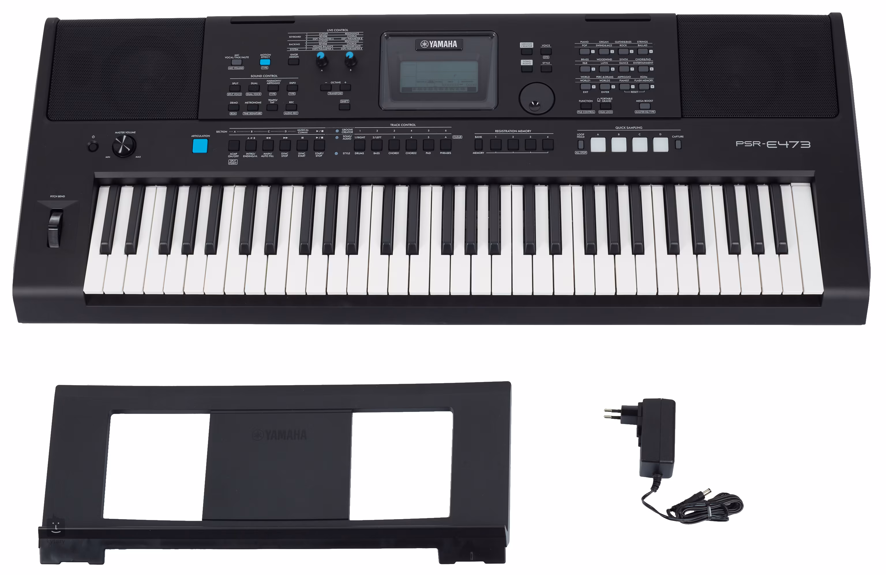 Yamaha PSR-E473 este o claviatură nouă în gama sa de preț, care este foarte versatilă în ceea ce privește sunetul și acoperă totul, de la muzica populară modernă până la clasicii vechi. Există 820 de sunete realiste din care puteți alege cu ajutorul tehnologiei Super Articulation Lite, care, de exemplu, oferă o zgârietură tipică pentru chitarele electrice sau simulează interpretarea fingerstyle la chitarele clasice. Desigur, există și sunetul de înaltă rezoluție al unui pian acustic sau funcții avansate, cum ar fi butonul Live pentru ajustarea parametrilor de tip sintetizator, eșantionarea, Groove creator pentru crearea de ritmuri, sistemul de sunet sofisticat sau înregistrarea pe memorie USB.