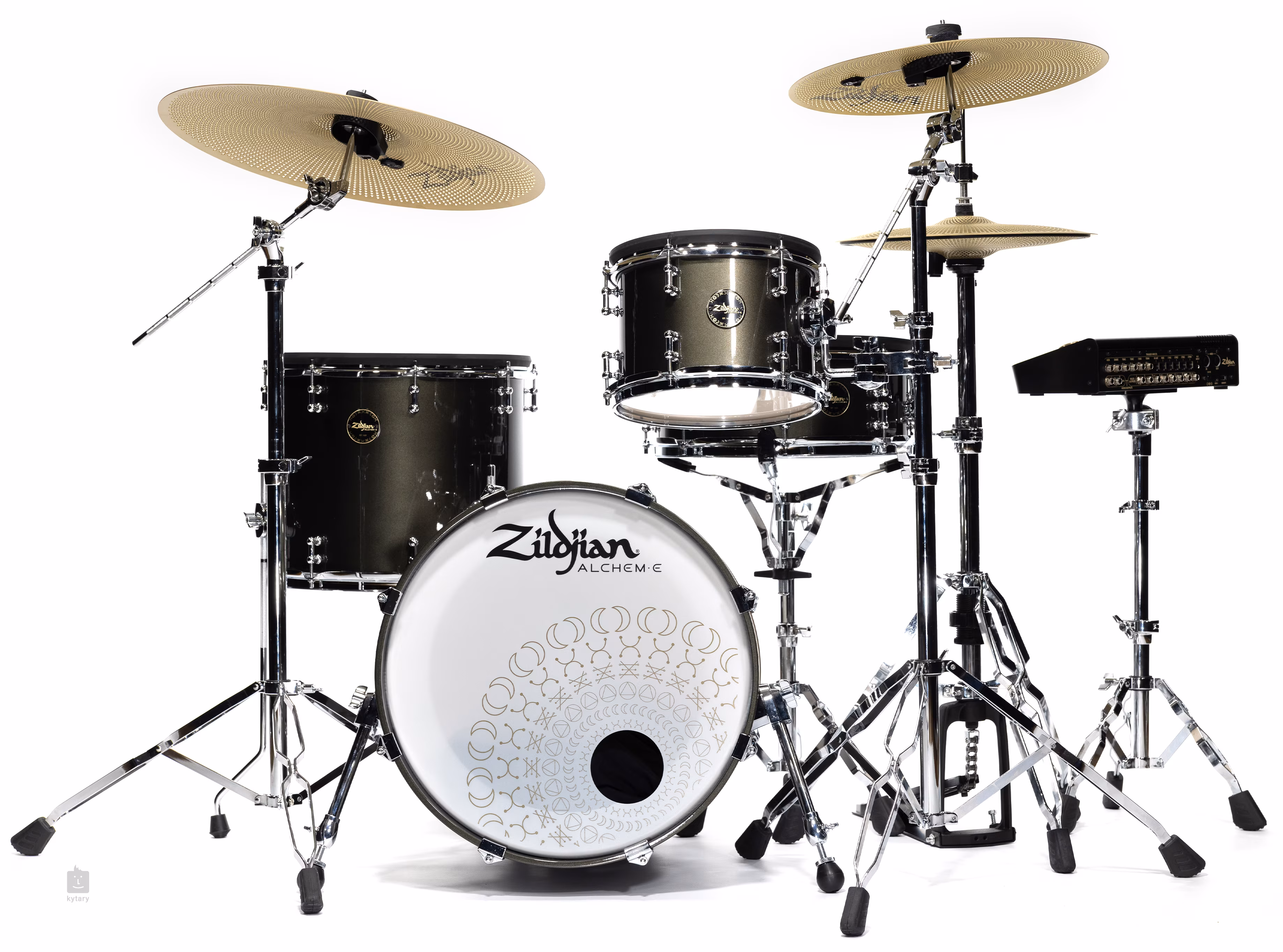 Zildjian E-VAULT, un nou modul de tobe electronice, oferă o autenticitate sonoră revoluționară care vă va cufunda complet. Modulul oferă o bibliotecă extinsă de sunete de tobe, țambale și percuție de înaltă calitate și oferă acces la aproape întregul catalog de țambale Zildjian. Utilizatorii își pot crea și actualiza formațiile ideale și își pot personaliza sunetul personal cu ajutorul navigației intuitive și a ecranului tactil color premium de 5". Echipate cu cymbals Zildjian E-FAMILY, kiturile ALCHEM-E oferă nu numai o experiență dinamică și realistă, ci și oportunități excelente pentru interpretare și înregistrare creativă.